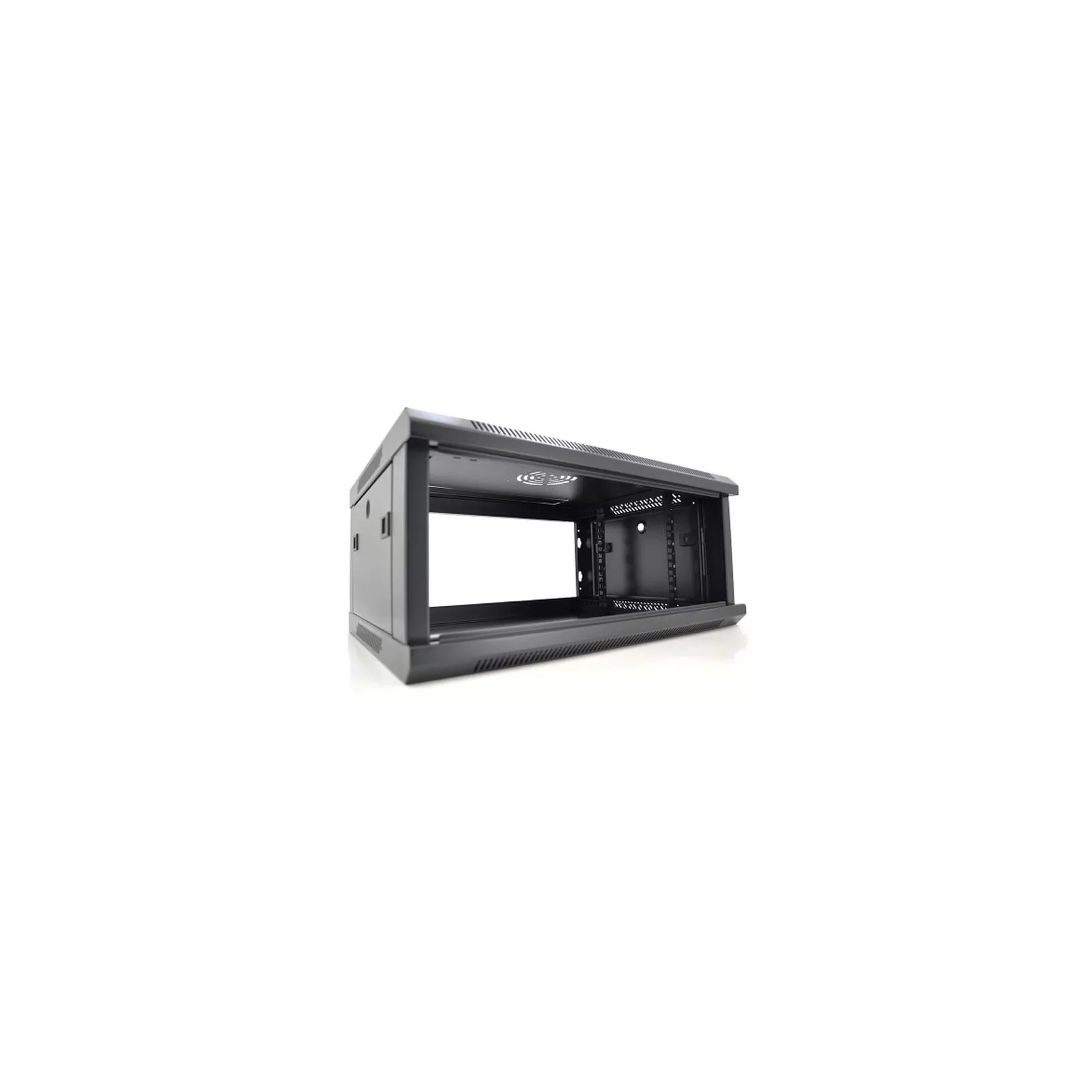 Шкаф Merlion 4U.Привлекательный внешний вид, двери из закаленного стекла, незаметный черный цвет.В верхней крышке шкафа предусмотрено место для установки вентилятора охлаждения.Передняя дверь из закаленного стекла с наличием замка для предотвращения нежелательного доступа к оборудованию.