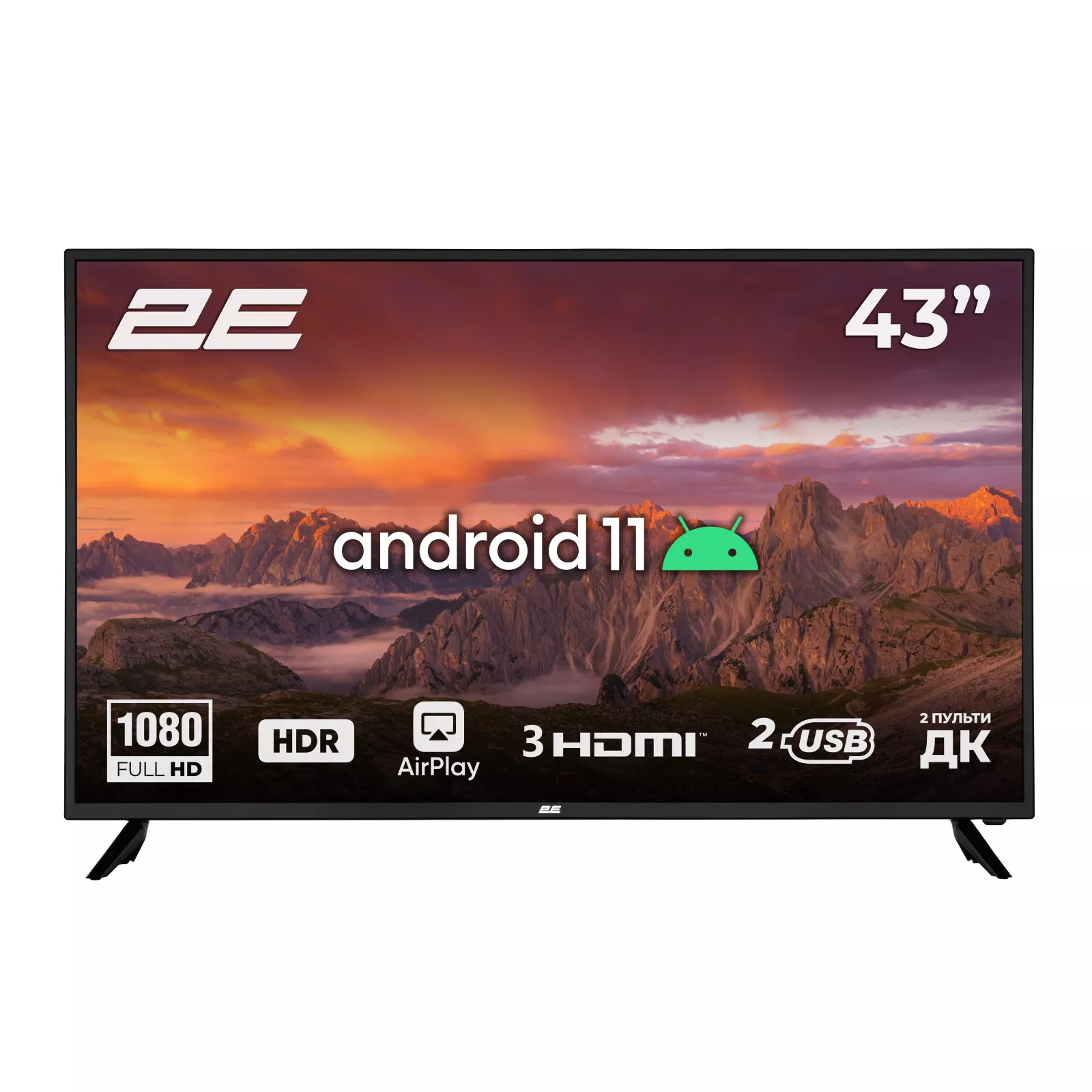 Телевизор 2E 43A06K в корпусе классического черного цвета имеет изящный дизайн, который не отвлекает от изображения. удовольствие от просмотра любимых фильмов и сериалов Благодаря светодиодной подсветке глаза не будут уставать во время длительного просмотра. Телевизор отличается высокой детализацией на 43-дюймовом экране. Можно смотреть с любой точки – широкие углы (178/178) обеспечивают одинаково качественную картинку. Разрешение Full HD (1920-1080) создает наилучший баланс четкости и энергопотребления. С технологией HDR, поддерживаемой телевизором, зритель получит более точную детализацию, контрастность и более широкий цветовой диапазон на самых темных и светлых участках, а также яркое, насыщенное и реалистичное изображение. Улучшает качество картинки и лишает лишних шумов технология Noise reduction 3D. Два канала акустических систем вместе с TruSurround XT, являющейся аналогом Dolby Digital, обеспечивают невероятное пространственное звучание. Предусмотрены различные режимы звука для полного погружения во время просмотра фильмов или спортивных соревнований и прослушивания концертов. подбирать контент и приложения по интересам. Благодаря Play Market можно загружать и обновлять любые приложения (YouTube, Skype, Netflix, соцсети, мессенджеры, игры и т.д.). Среди дополнительных преимуществ: дублирование экрана и вывод контента с устройств Apple, предусмотрены технологию Apple AirPlay. Если интересует не только интернет-контент, есть два тюнера – аналоговый и цифровой. , антенны и т.д. Это создает дополнительные возможности транслировать видео, фото и аудио с телефона, планшета или ноутбука. работает от двух батареек. Кроме того, имеется дополнительный пульт ДУ упрощенного дизайна, который пригодится людям преклонного возраста и с ограниченными возможностями. Совместимость с настенным креплением стандарта VESA 200 × 200 (требуется Купить отдельно) обеспечивает доступный монтаж телевизора.