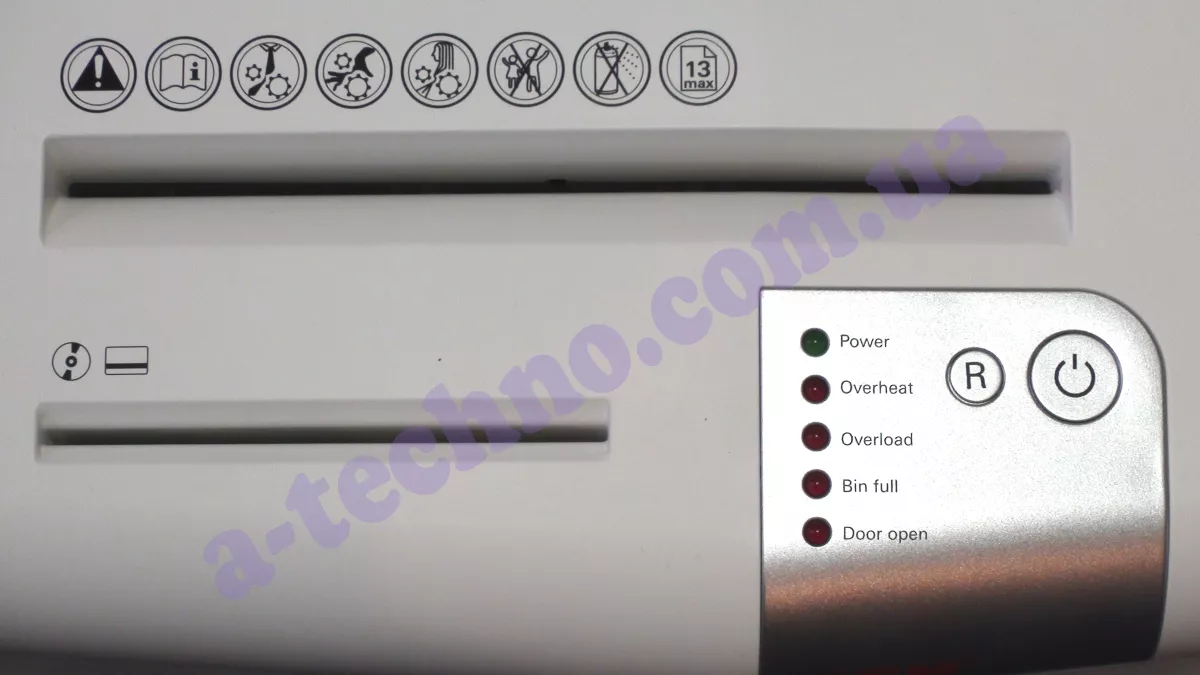 Шредер HSM Shredstar X13 (4.0x37) оснащен кнопками включения питания, реверса и режима непрерывной работы. Двигатель включается автоматически при загрузке материалов в приемное окно и выключается после окончания уничтожения. Режим непрерывной работы заставляет двигатель работать постоянно, тем самым Вы экономите время на уничтожение больших объёмов документов.