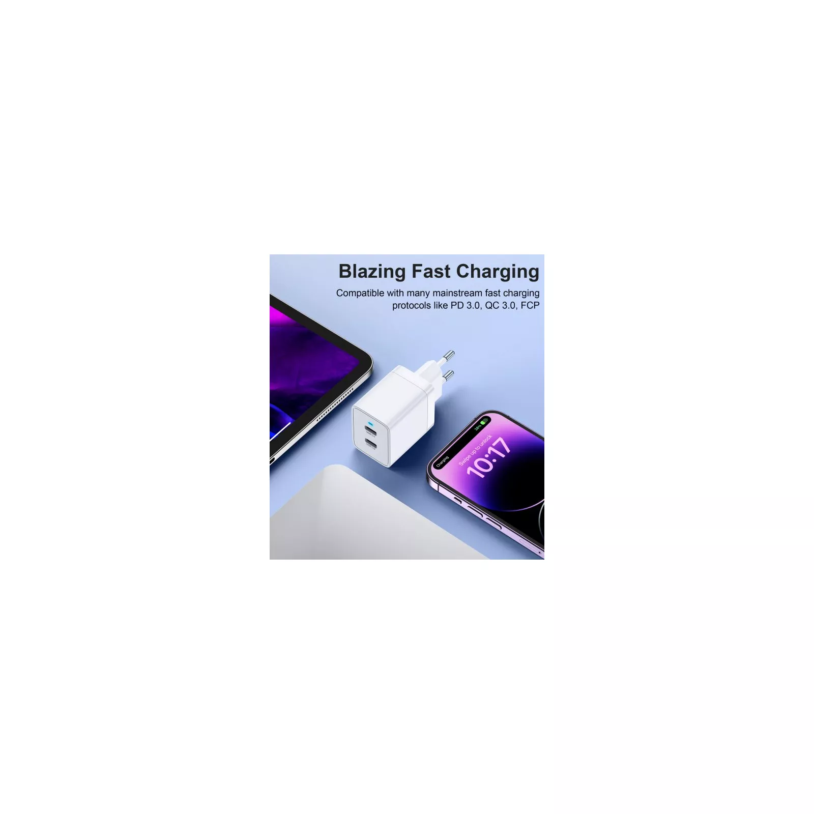 Особенности: Выходная мощность 40 Вт, поддерживает зарядку iPad и iPhone Двойной C-порт для быстрой зарядки 2 устройств. Совместимая с несколькими протоколами быстрая зарядка более эффективна: поддержка PD, QC 3.0, FCP и других протоколов быстрой зарядки, быстрая зарядка телефонов/планшетов Apple, Android Материал корпуса огнестойкий и устойчивый к высоким температурам, с защитой от перегрузки током, защитой от перегрева, защитой от перенапряжения, защитой от короткого замыкания.