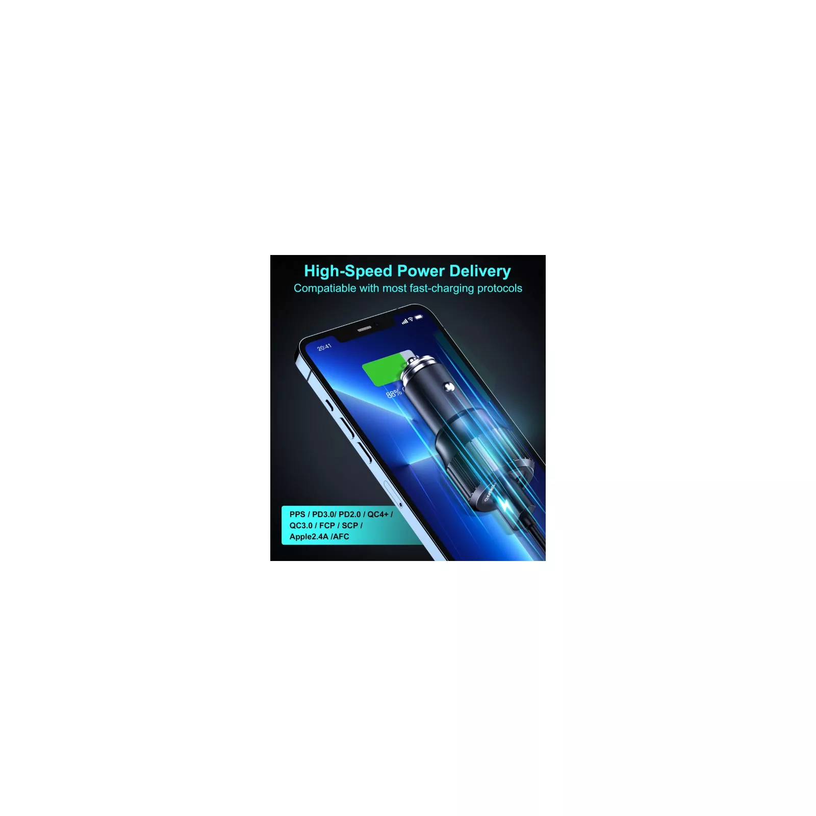 Двух портовый выход: благодаря двум портам PD 45 Вт USB -C и QC 3.0 USB-A это автомобильное зарядное устройство может одновременно быстро заряжать устройства водителя и пассажира