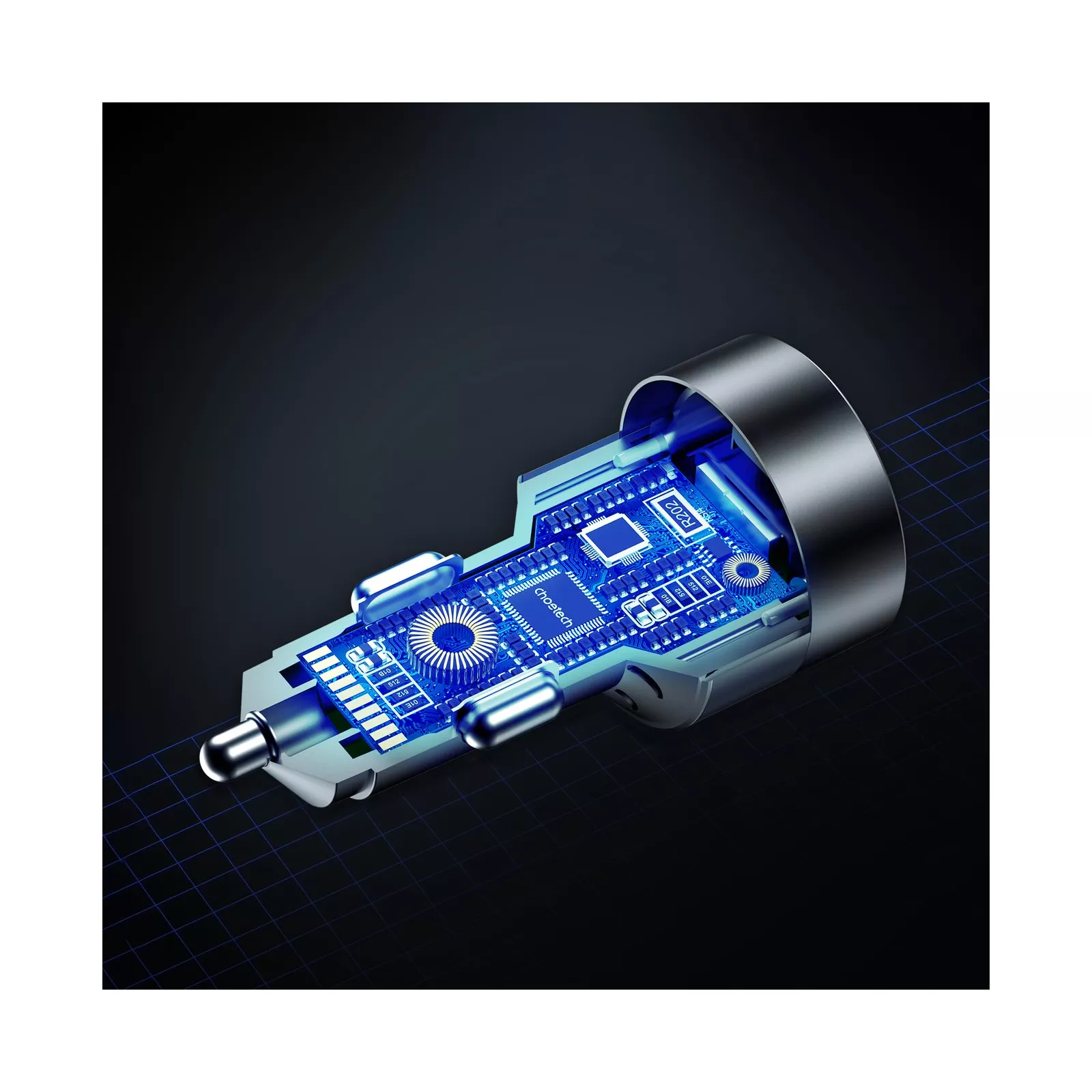 Автомобильное зарядное устройство позволяет быстро заряжать одновременно два устройства. Сертифицировано многими основными протоколами быстрой зарядки.