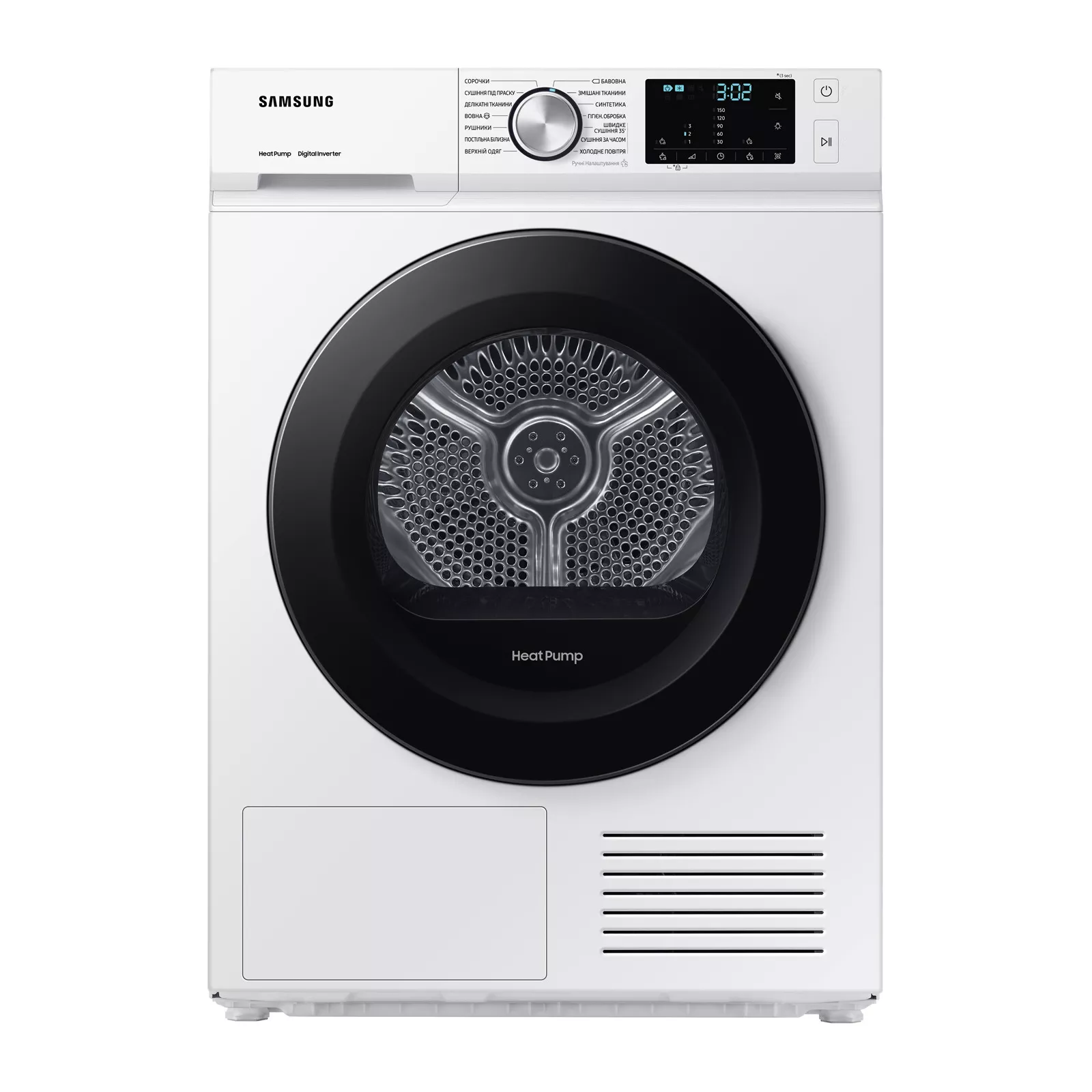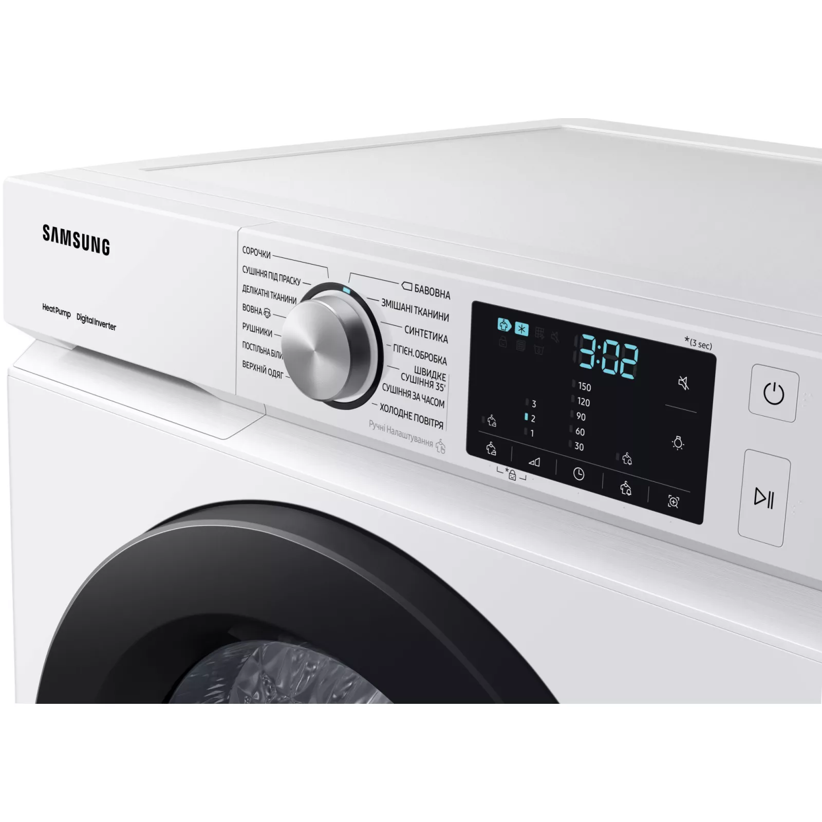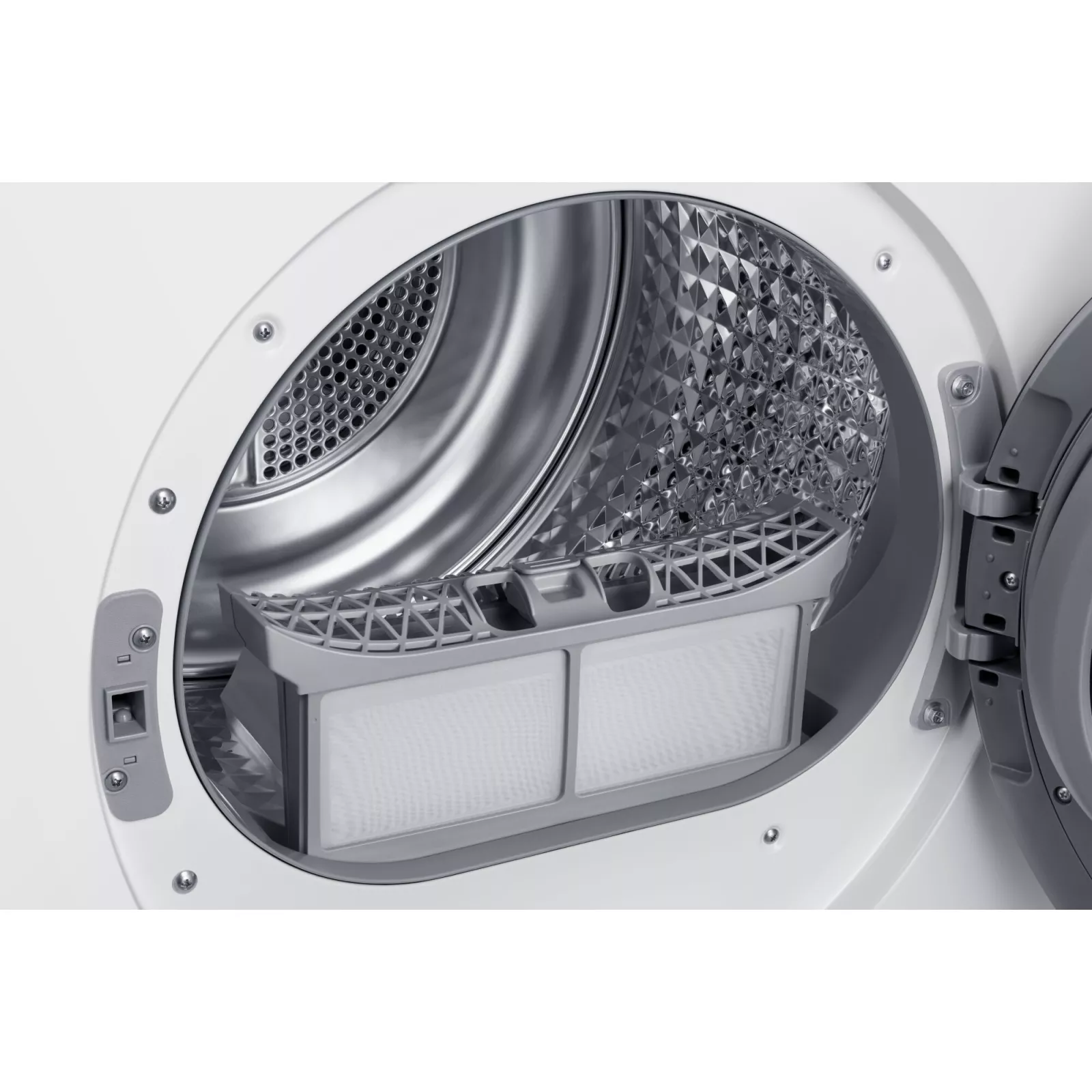 Сушильная машина с тепловым насосом, загрузка 9 кг, быстрая сушка, предотвращение замятия, подсветка барабана, Air Wash, система AI Control, инверторный двигатель.