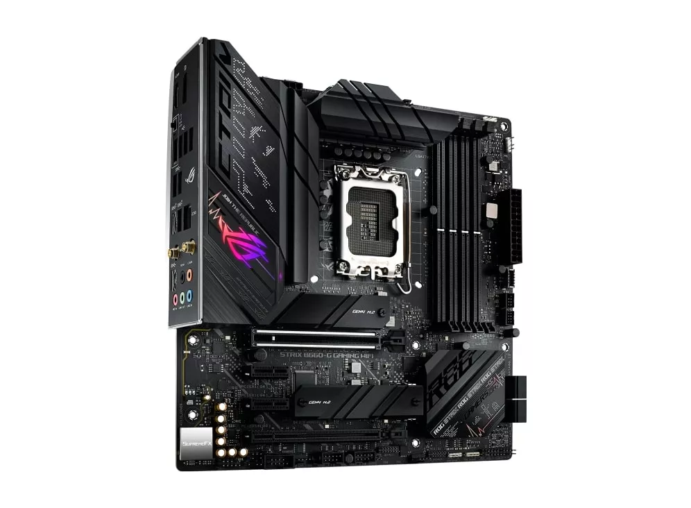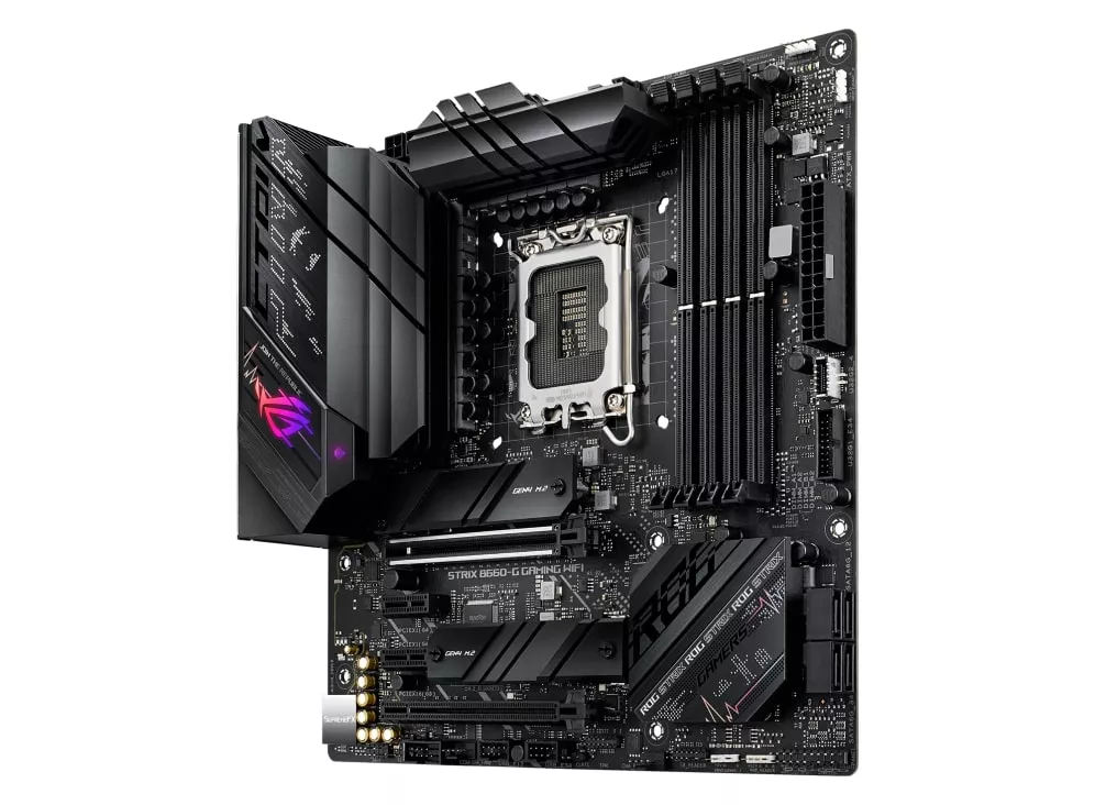 Многослойная конструкция печатной платы способствует лучшему рассеиванию тепла в области системы питания, что повышает общую стабильность работы компьютера и увеличивает разгонный потенциал процессора . < span>Материнские платы серии ROG Strix B660 обеспечивают всесторонний контроль работы вентиляторов как с помощью инструмента Fan Xpert 4, доступном в программном центре Armoury Crate, так и через UEFI BIOS. < span> К материнским платам ASUS добавляется программное обеспечение, в котором реализована технология интеллектуального шумоподавления как для входящего, так и для исходящего (от микрофона*) аудиопотоков. Алгоритм, основанный на системе глубокого обучения с миллионами образцов различных типов шумов, выделяет голос, фильтруя посторонние звуки: стук клавиш, щелчок кнопок мыши и т.д. Функция ASUS AI Cooling автоматически управляет работой вентиляторов, подключенных к материнской плате, обеспечивая оптимальные настройки в зависимости от текущего нагрузки и температуры в системе. Эксклюзивная утилита ROG GameFirst VI поможет как новичкам, так и экспертам оптимизировать сетевые настройки для комфортной игры через интернет. Новая версия утилиты использует интеллектуальные технологии идентификации параметров сети для обеспечения более быстрой и качественной оптимизации. Комплексные параметры настройки памяти являются краеугольным камнем материнских плат ROG. Платы ROG Strix B660-G Gaming WiFi с памятью DDR5 предназначены для установки рекордов производительности, предлагая наборы параметров для разгона не только с использованием скоростных комплектов памяти, но также модулей памяти начального уровня с заблокированным управлением питания. span> На материнской плате реализован беспроводной интерфейс нового поколения Wi-Fi 6 (802.11ax), отличающийся повышенной стабильностью и скоростью работы в условиях большого количества одновременно подключенных клиентов. Чтобы раскрыть полный потенциал стандарта Wi-Fi 6, используйте маршрутизатор ASUS стандарта Wi-Fi 6. Контроллер 2.5G Ethernet от Intel позволяет увеличить скорость проводного подключения к сети, используя текущую кабельную инфраструктуру. Результат: онлайн-игры без лагов, трансляции видеороликов без пауз, передача файлов без длительного ожидания. ROG SupremeFX – это уникальное сочетание аппаратного и программного обеспечения для высококачественного звука. В плате ROG Strix B660-G Gaming WiFi она использует кодек S1220A для повышения частоты дискретизации звука по всем каналам со 192 до 384 кГц. Разъем на передней панели подключен к встроенному усилителю Savitech, способному обслуживать разнообразные геймерские гарнитуры и Hi-Fi наушники. ROG Strix B660-G Gaming WiFi привлекает внимание футуристическими элементами дизайна и надписью «Strix», отчеканенной под углом на кожухе интерфейсной панели Добавьте к этому логотип с регулируемой RGB-подсветкой, чтобы получить оригинальное решение для составления компьютера, не похожего ни на один другой. Материнские платы серии ROG Strix оснащаются встроенной системой подсветки ASUS Aura с гибкой регулировкой параметров. Кроме того, к ним можно подключить программируемые светодиодные ленты и синхронизировать визуальные эффекты с другими Aura-совместимыми устройствами ASUS. Инновационный крепеж Q-Latch упрощает установку и высвобождение SSD-накопителей формата M.2 – для этого не требуются никакие специальные инструменты. Конструкция креплен