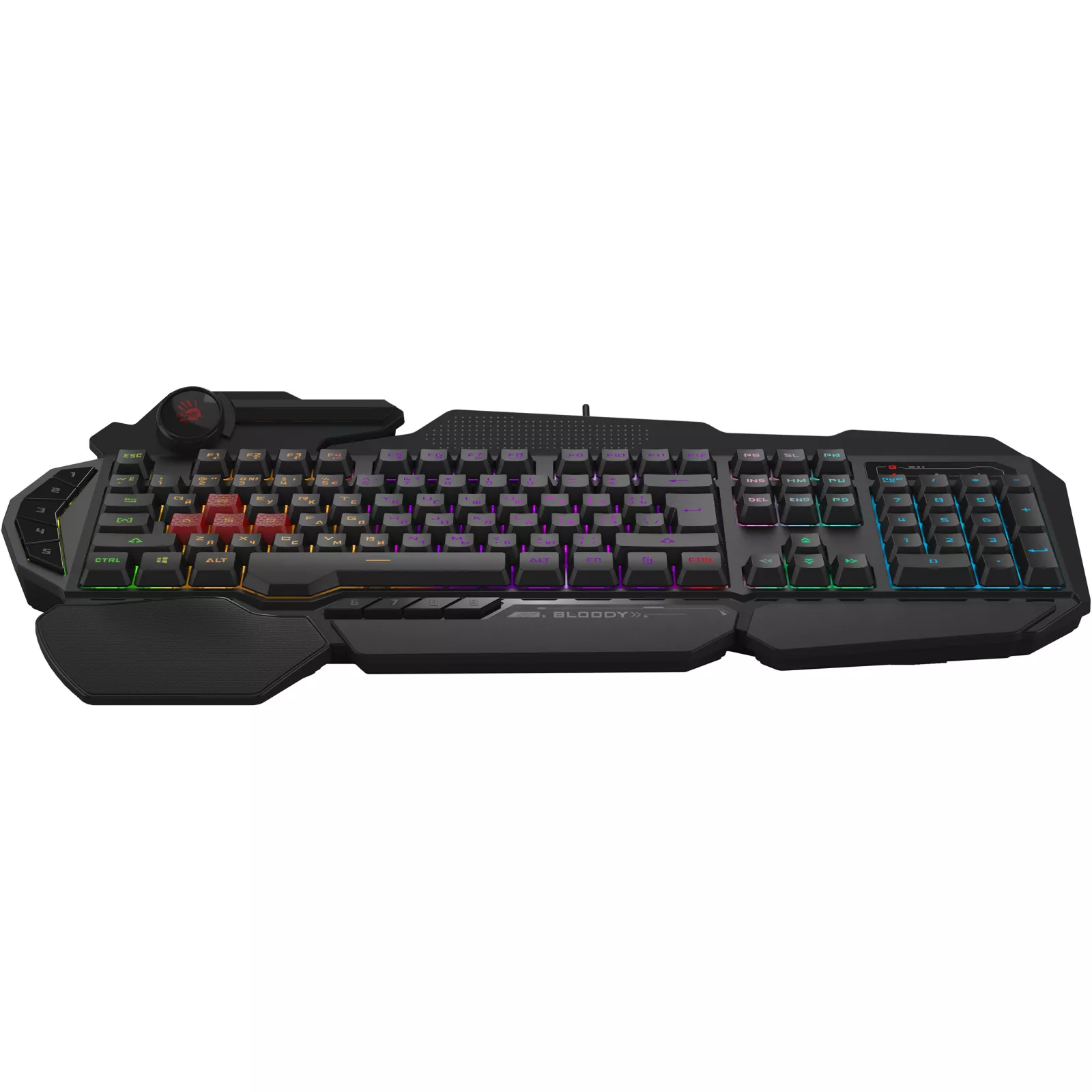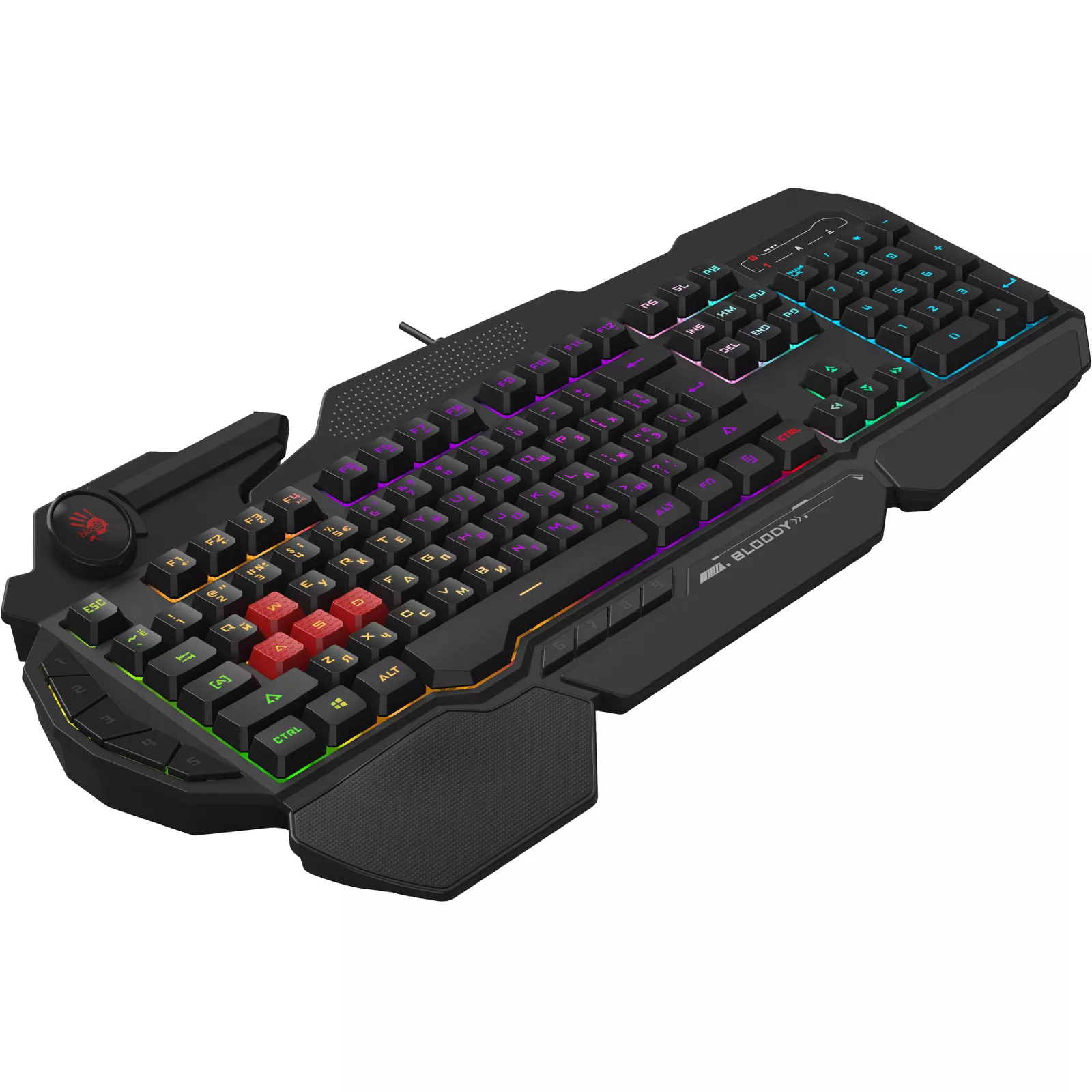 Эта клавиатура является полноразмерной и имеет традиционную форму. оснащена и укомплектована яркой подсветкой клавиш с возможностью регулировки яркости и дополнена системой защиты от попадания жидкости.