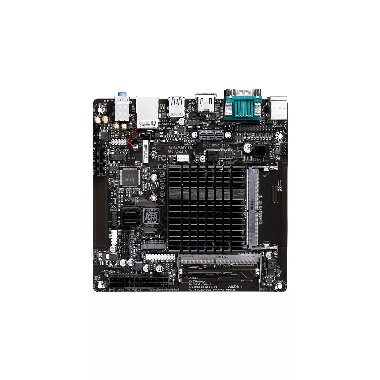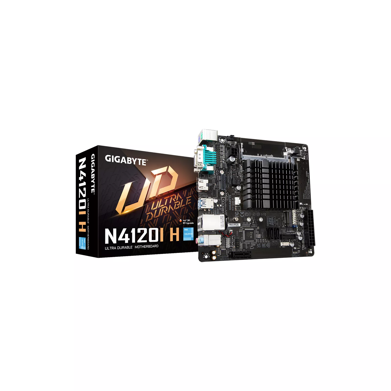 Материнская плата Gigabyte N4120I H форм-фактора Mini ITX сочетает широкую функциональность и высокое качество изготовления. Имеет встроенный процессор Intel Celeron N4120, позволяющий устанавливать 64 ГБ оперативной памяти, используя 2 слота для планок.