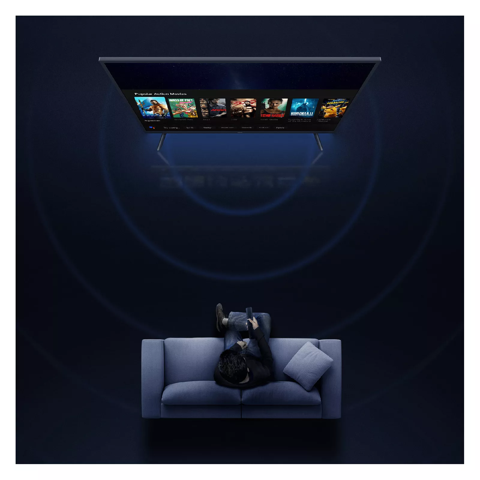 Пульт дистанционного управления может управлять телевизором под любым углом. Наслаждайтесь доступом к любимым потоковым платформам с помощью специальных кнопок для Netflix и Prime Video.