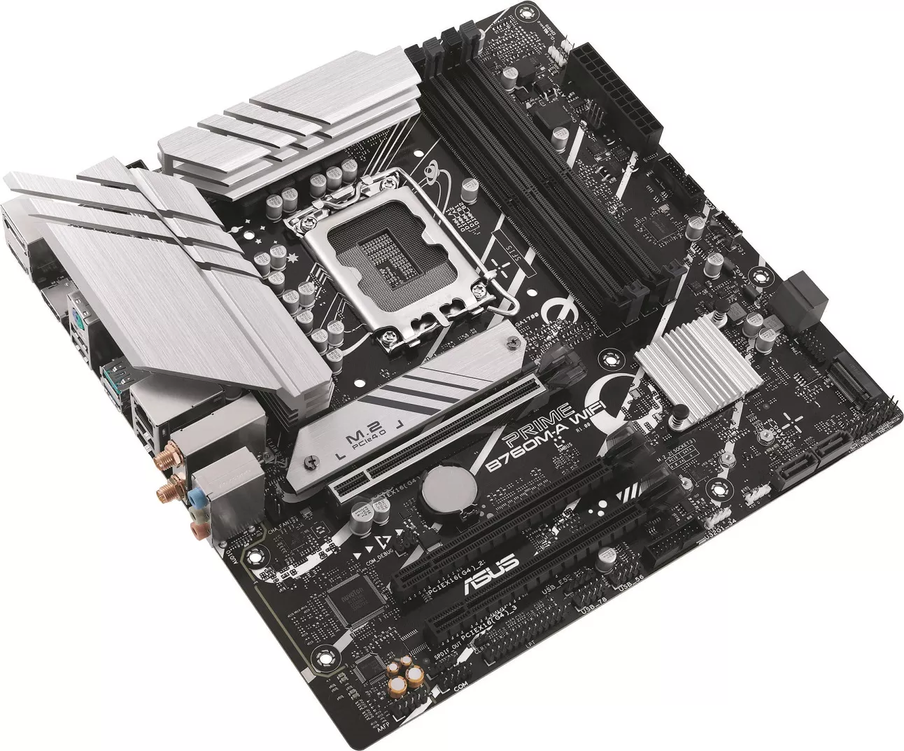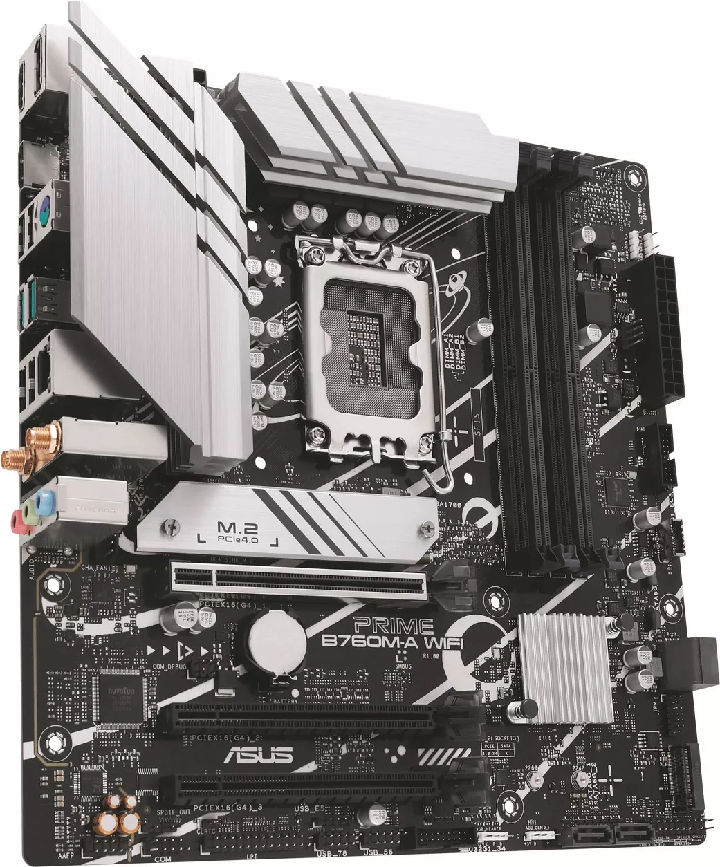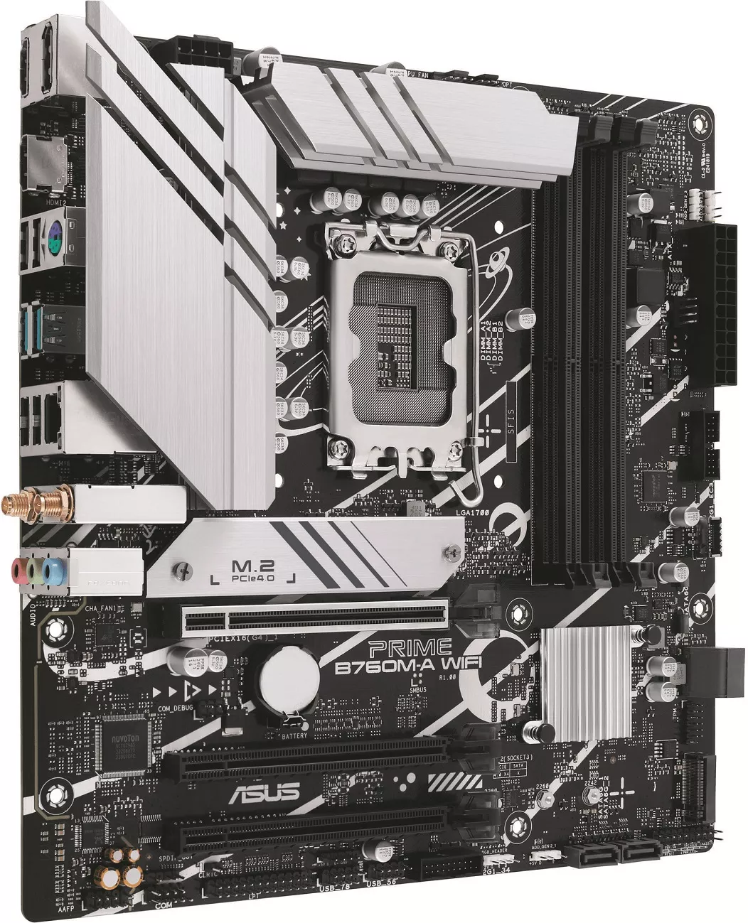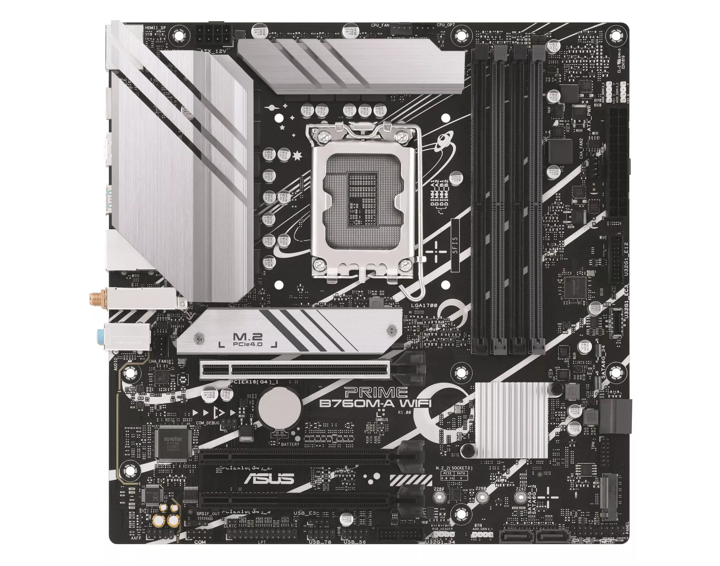 Материнская плата PRIME B760 разработана специально для процессоров Intel 13-го и 12-го поколений и предлагает подключение PCIe 4.0 для новейших графических процессоров.
