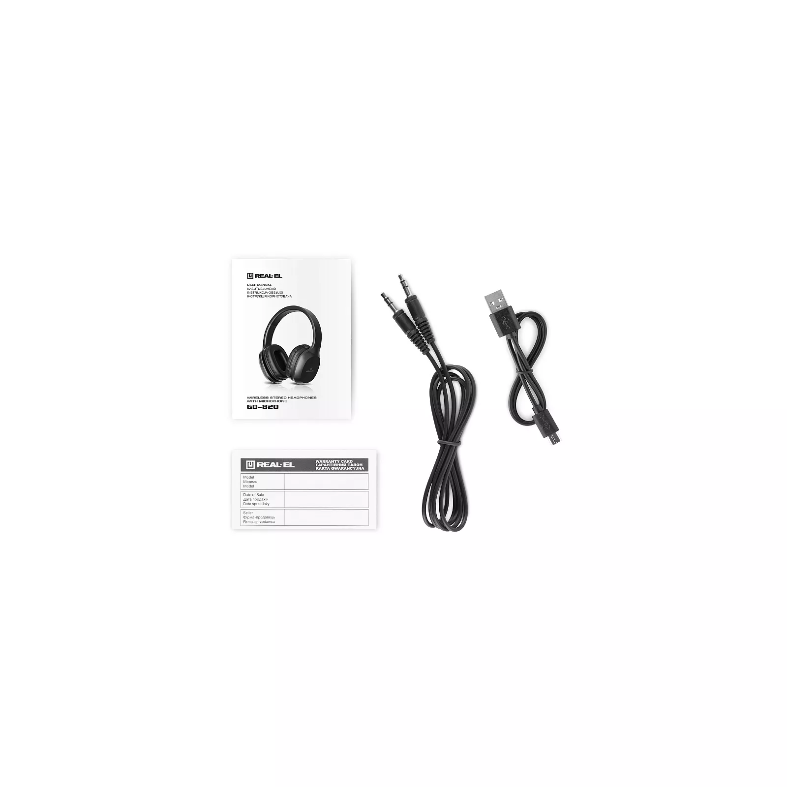 Беспроводные стереонаушники с микрофоном REAL-EL GD-820воспроизводят качественный чистый звук, идеально подходят для прослушивания музыки, просмотров видео, общения и игр. Гарнитура легкая и компактная из прочного пластика, на котором не остается отпечатков пальцев. Поворотные чаши и амбушюры из мягкой эко-кожи обеспечивают комфотную посадку и изоляцию от внешних шумов. На правом наушнике находятся кнопки управления, которые легко найти на ощупь. Встроенный аккумулятор обеспечивает до 12 часов автономной работы, после чего их можно подключить кабелем mini jack, который входит в комплект вместе с кабелем для зарядки USB - micro USB.