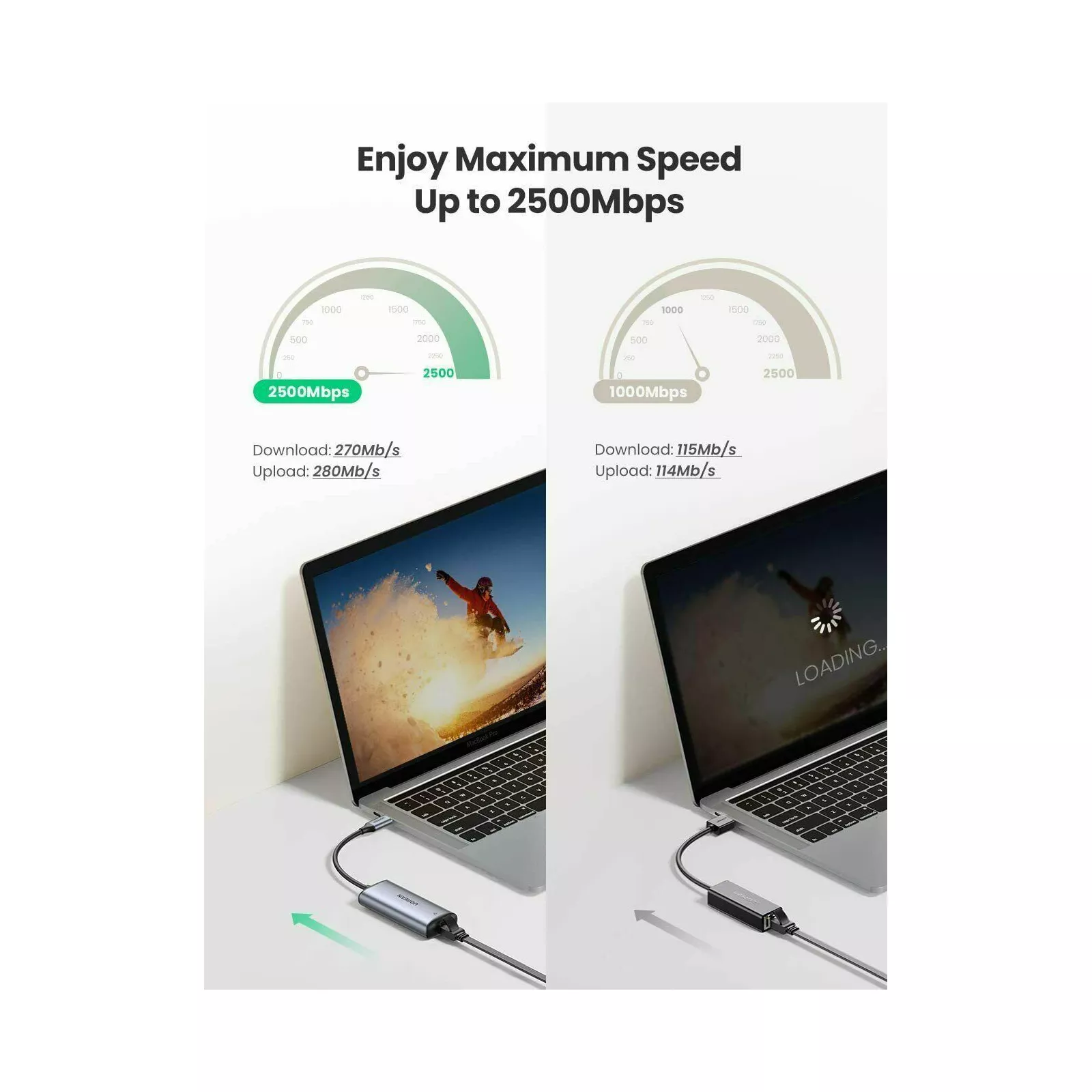 Поразительная стабильность и безопасность. Для поддержки сверхбыстрой, стабильной и безопасной потоковой передачи данных Gigabit Ethernet Adapter UGREEN CM275 (70446) построен на базе чипсета RTL8156. Алюминиевый корпус быстрее отводит и рассеивает тепло. Сохраняет сетевой адаптер прохладным даже при выполнении сложных задач. Стандартные разъемы обеспечивают хорошее соединение для стабильной работы.