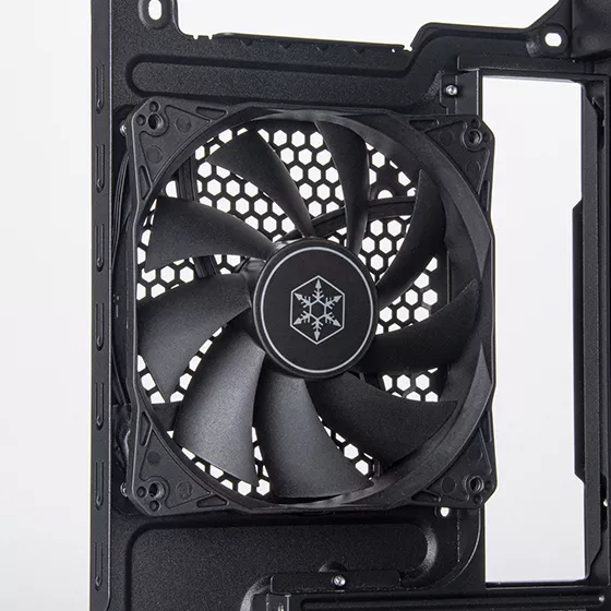 Корпус рассчитан на воздушное охлаждение для процессора высотой до 156 мм и на системы жидкостного охлаждения двух-, односекционные на переднюю панель, в том числе и со 140-мм радиатором, и односекционную 120-мм на заднюю панель.