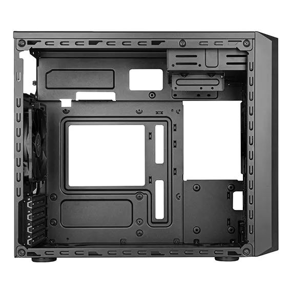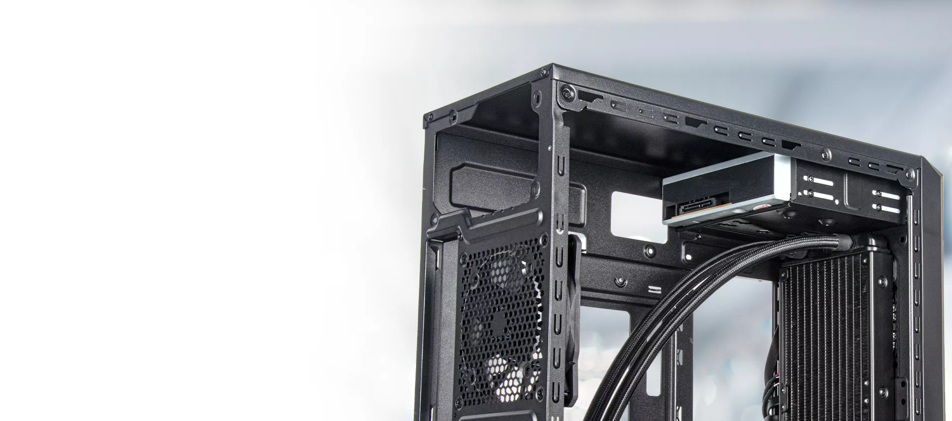 Точно спроектированный интерьер обеспечивает достаточное пространство для производительной видеокарты и нескольких вариантов охлаждения. В корпус можно установить по два 3.5" дюймовых и 2.5" дюймового накопителя в различных комбинациях. Слот 3.5" конвертируется в 2.5" дюймовый, также предусмотрен внешний 5,25" отсек, с возможностью конвертации в 3.5" или 2.5" дюймовый. Корпус рассчитан на блок питания ATX длиной до 140 мм. В наличии 4 слота расширения. Конструкция позволяет установить видеокарты длиной до 354 мм с ограничением ширины до 161 мм при наличии 120 мм вентилятора на передней панели. Корпус отличается вместительным интерьером и совместим по параметрам с современными комплектующими. Аккуратная, удобная компоновка и размещение кабелей в корпусе благодаря продуманному кабелю менеджмента.