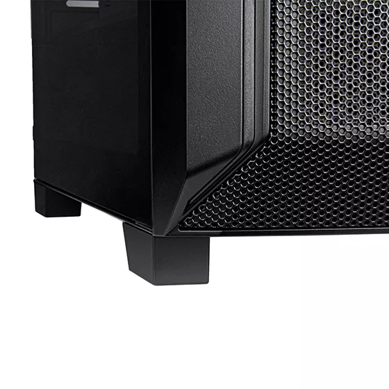 На передней панели металлическая сетка с пластиковыми вставками, которые расположены вертикально и подсвечиваются ARGB лентой. ARGB вентиляторы на передней панели помимо своей прямой рабочей функции также являются дополнительным элементом дизайна. Корпус имеет нарядный и яркий вид. Металлическая сетка на передней панели способствует беспрепятственному проникновению воздушных потоков и охлаждению компонентов. Подсветка подчеркивает четкие линии элементов конструкции. Боковая панель из закаленного стекла. span>