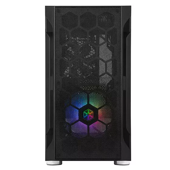 На передней панели хорошо продувается металлическая сетка, которая способствует беспрепятственному проникновению воздушных потоков и охлаждению компонентов Корпус с классическим дизайном и панелью управления с верхним расположением имеет строгий и сдержанный вид. Боковая панель из закаленного стекла. span>