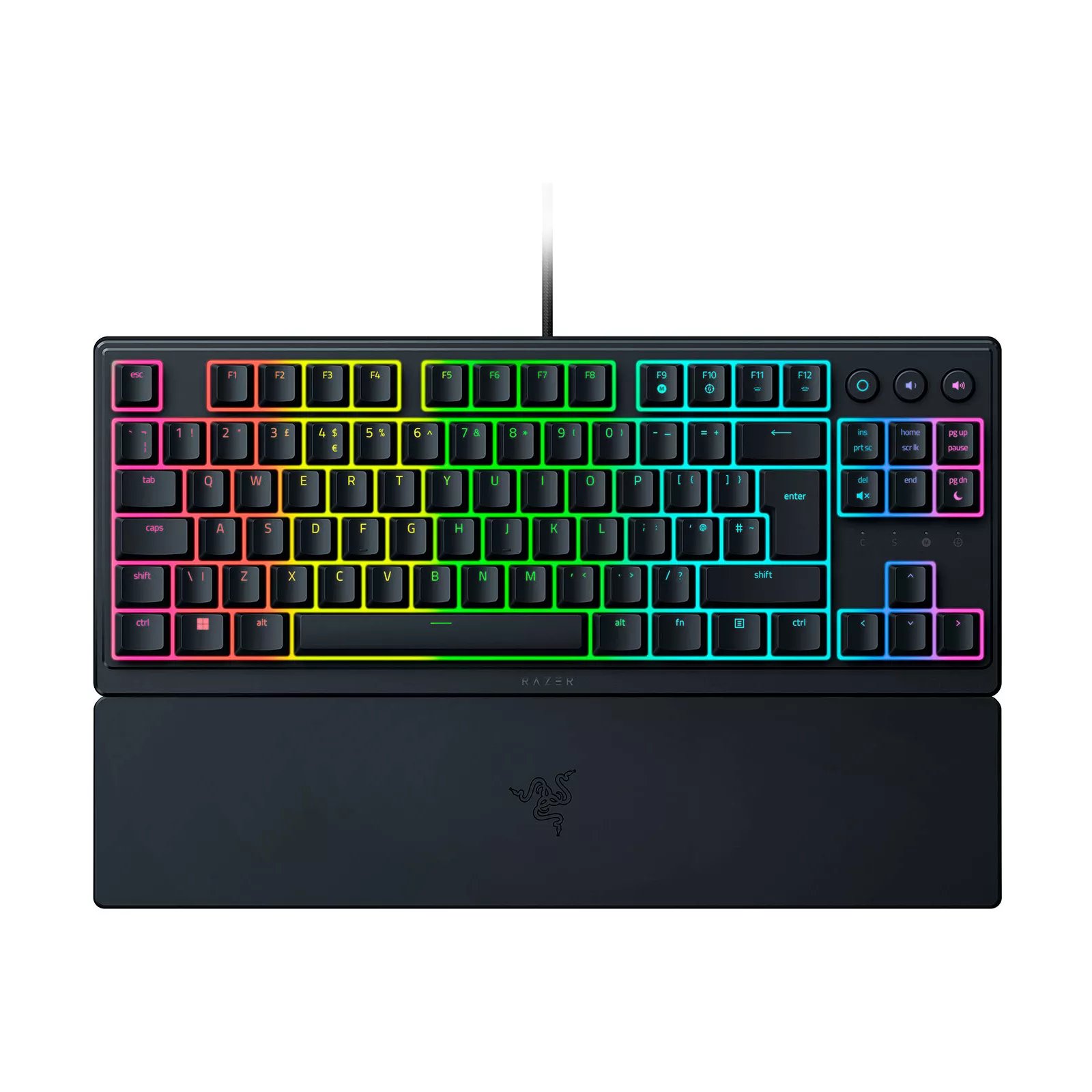 Освоите два мира с Razer Ornata V3 Tenkeyless - низкопрофильной эргономичной игровой клавиатурой без цифрового блока с использованием технологии Razer Chroma RGB. оснащен и укомплектована ультратонким форм-фактором и уникальными мембранными переключателями Razer Mecha-Membrane, доминируйте над вашей работой и игрой с компактной гибридной клавиатурой, которая бьет выше своего веса.