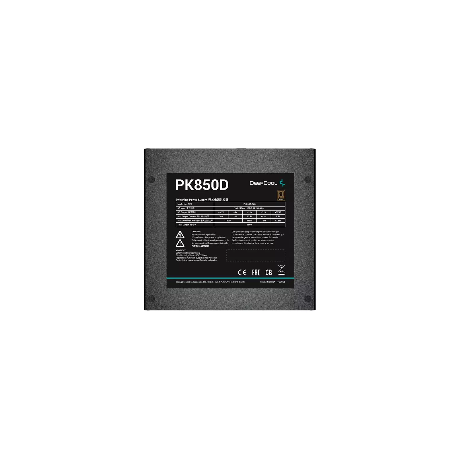 Deepcool PK850D — надежный блок питания, который обеспечит превосходную эффективность 80 PLUS Bronze для питания компьютерных систем. оснащен и укомплектован 120-мм вентилятором, который подарит системе тихое производительное охлаждение.