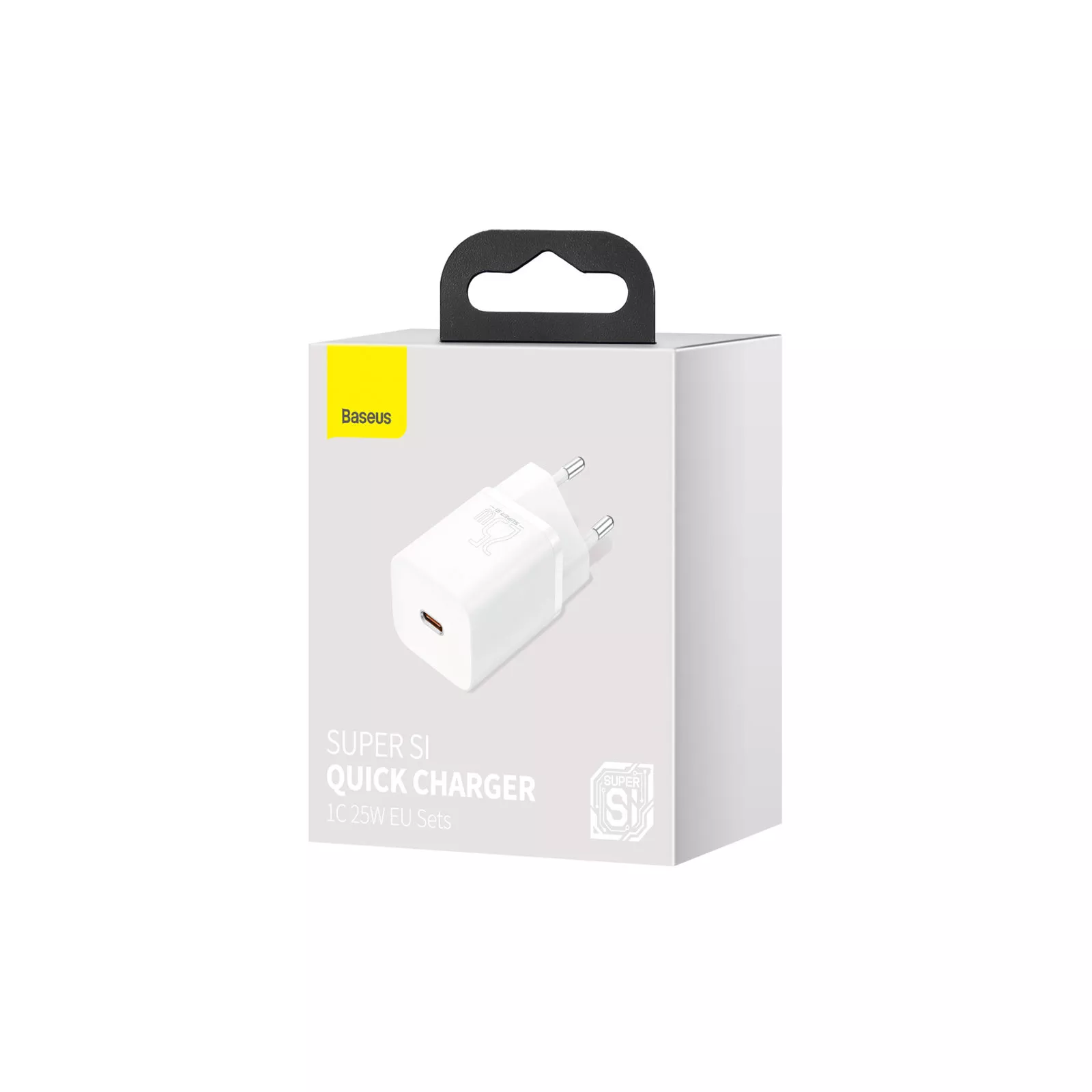 Сетевое зарядное устройство для Baseus Super Si Quick Charger 1C 25 Вт EU Белое (CCSP020102) - это компактное, удобное, элегантное, инновационное и стильное устройство, изготовленное из высококачественных материалов. Данное зарядное устройство имеет 1 Type-C (USB Type-C PD3.0) мощностью 3 A, USB Type-C порт поддерживает современные стандарты быстрой зарядки – Power Delivery 3.0, Quick Charge 3.0, Samsung AFC, благодаря которым процесс восстановления заряда Ваших аксессуаров ускоряется в несколько раз - это поможет Вам быстро заряжать различные девайсы, а выходная мощность зарядки достигает 25 Вт. . Super Si представляет собой новый тип полимера на основе кремния, который имеет преимущества с точки зрения преобразования плотности, теплопроводности и эффективности. Термостойкий материал позволяет внутреннему теплу моментально рассеиваться с наружной поверхности корпуса и поддерживать нормальную рабочую температуру даже в тяжелых условиях эксплуатации. Интегрированный интеллектуальный чип гарантирует защиту от прекращения питания, а для безопасной зарядки подключенных устройств с разными потребностями в мощности предусмотрена автоматическая регулировка необходимого тока.