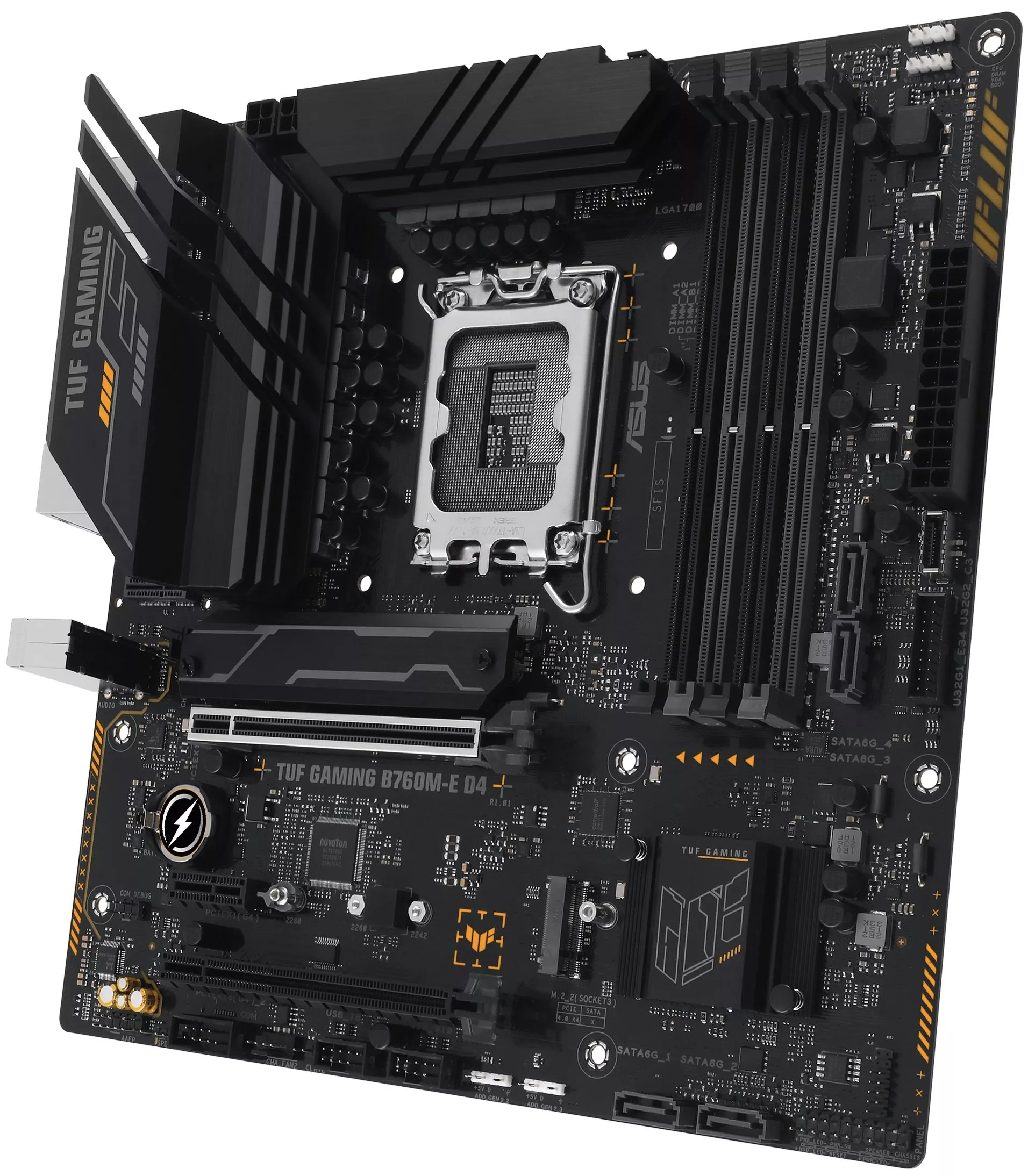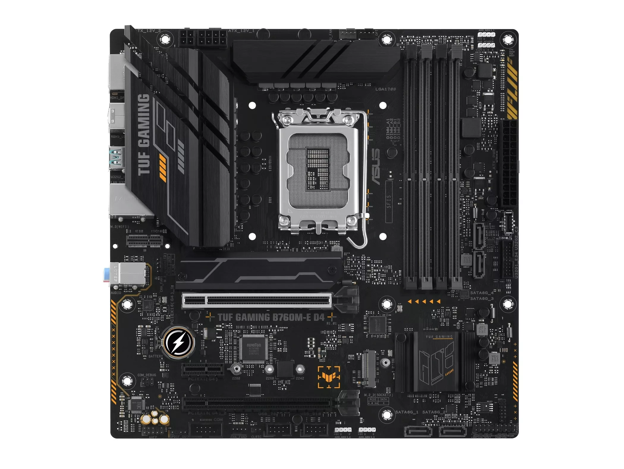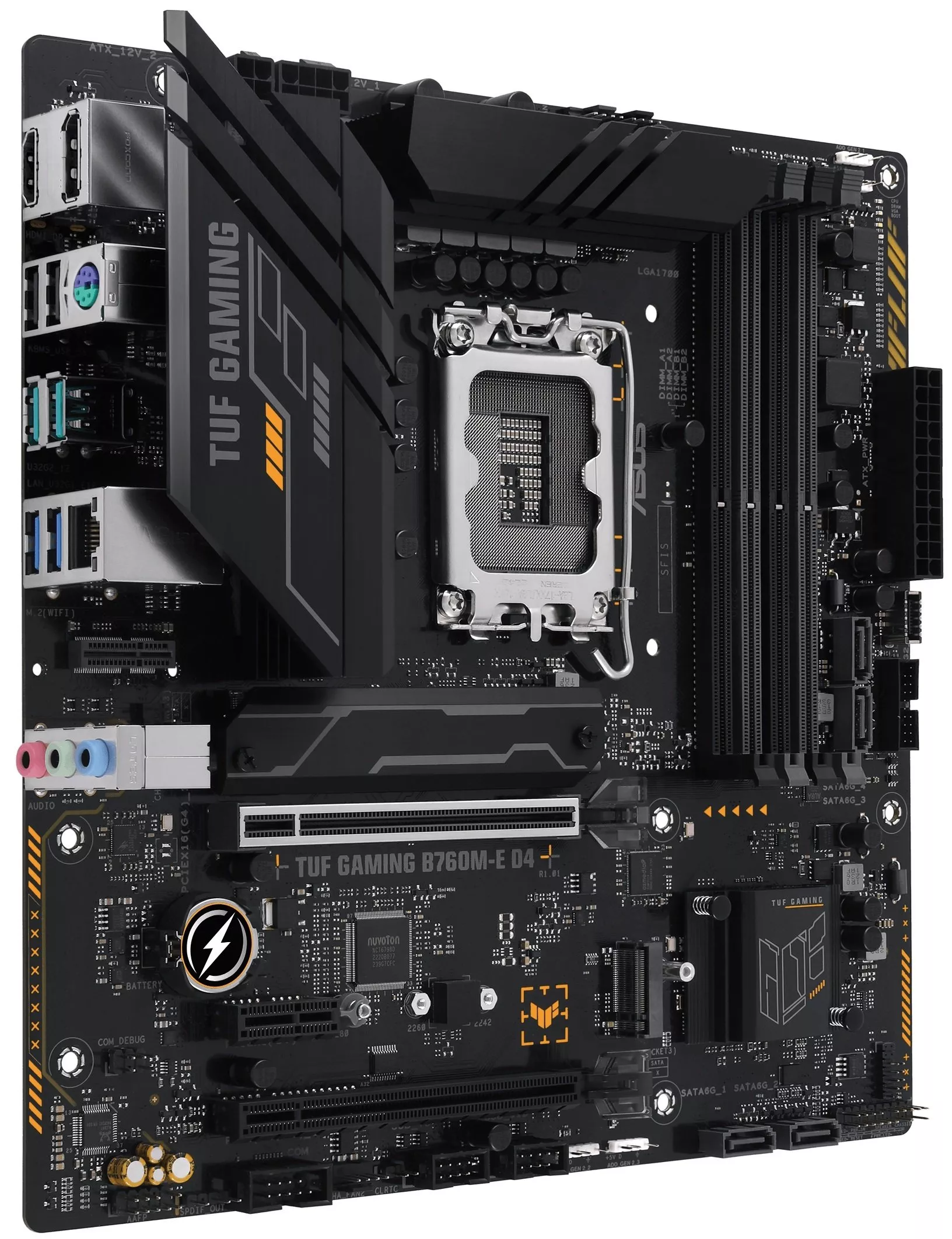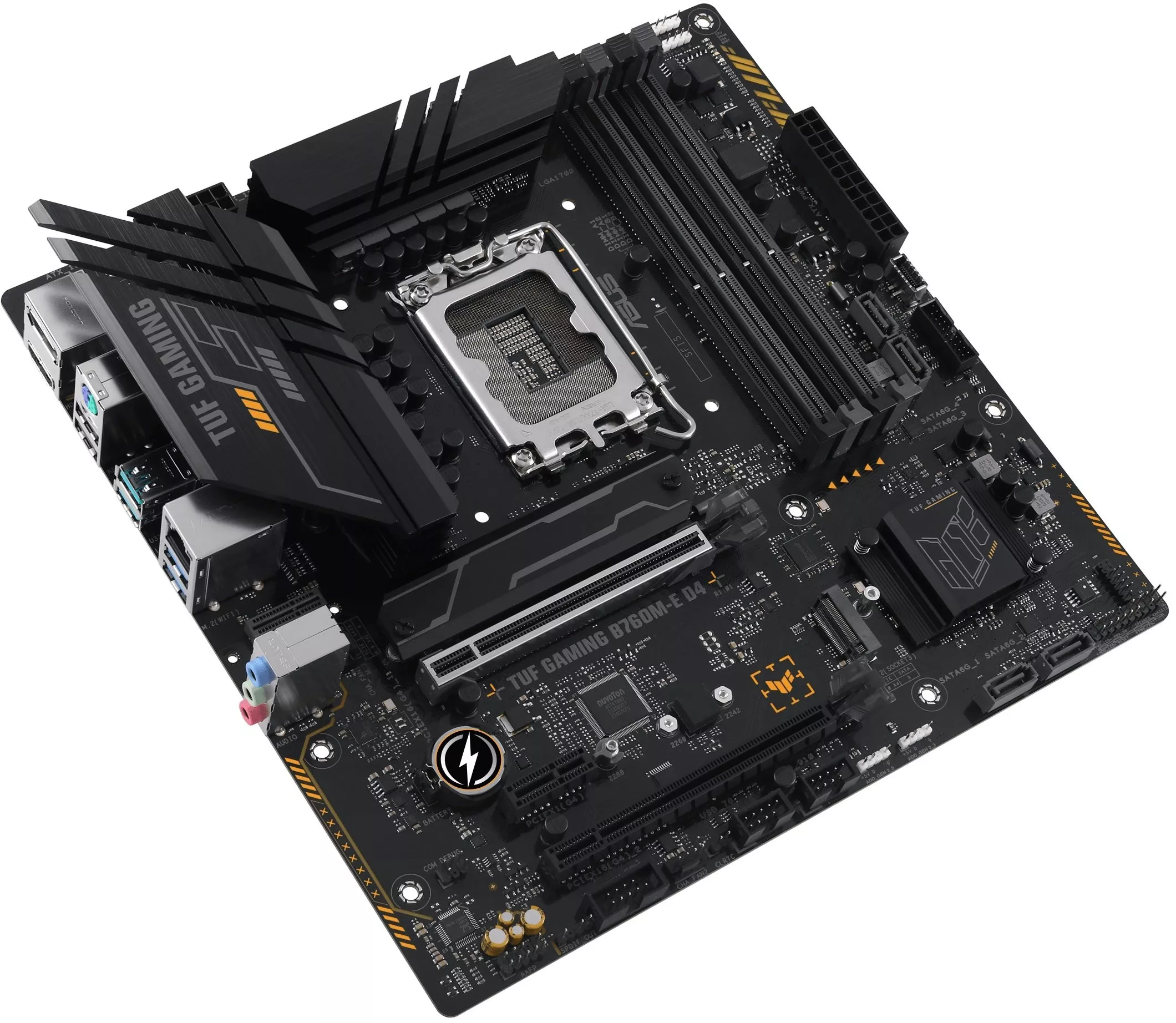 Эксклюзивные конденсаторы TUF 5K Black Metallic могут похвастаться повышенной (до 52%) термостойкостью и увеличенным в 2,5 раза сроком службы, чем обычные . < span>Стабилизатор напряжения (VRM) Digi+ обеспечивает высокую надежность и стабильность питания при любых нагрузках. Для достижения максимальной пропускной способности подсистемы памяти было предложено новое решение. Технология ASUS OptiMem II означает использование оптимизированного разведения слотов памяти в определенном слое печатной платы с целью уменьшения длины дорожек, а также дополнительные зоны экранирования для устранения электромагнитных наводок. Используя возможности интерфейса PCIe 4.0, два разъема M.2 на этой плате обеспечивают скорость передачи данных до 64 Гбит/с. Они идеально подходят для подключения современных твердотельных накопителей (формата 2280), которые позволяют значительно ускорить стартовую загрузку операционной системы и запуск программ. Большой радиатор установлен в зоне размещения модуля стабилизатора напряжения и дросселей. Плата TUF GAMING B760M-E D4 оснащена радиатором для устройства M.2, которое можно установить вместе с накопителем . Таким образом, он сможет показать свою максимальную производительность без угрозы перегрева. Материнская плата TUF GAMING B760M-E обеспечивает всесторонний контроль работы вентиляторов как с помощью утилиты Fan Xpert 2, так и через интерфейс UEFI BIOS.< /p> TUF GAMING B760M-E D4 раскрывает полный потенциал производительности благодаря поддержке шины PCI Express 4.0, тогда как арсенал USB-портов включает разъем Type-C, предлагая расширенную совместимость и увеличенную пропускную способность. Линейка материнских плат TUF GAMING подходит для пользователей с любым опытом сборки ПК. Продуктовая экосистема TUF GAMING облегчает поиск совместимых компонентов, а доступ к функции Fan Xpert 2+, аппаратным параметрам, системе двустороннего интеллектуального шумоподавления и RGB подсветке осуществляется через удобный интерфейс Armoury Crate. Эта платформа предлагает интуитивно понятные инструменты для создания лучших компьютеров. TUF GAMING Alliance – это альянс, в рамках которого компания ASUS взаимодействует с основными производителями компьютерных компонентов с целью обеспечить гарантированную совместимость материнских плат и широкого ассортимента компонентов: компьютерных корпусов, блоков питания, кулеров, комплектов памяти и т.д. Количество участников TUF Gaming Alliance и спектр предлагаемых ими компонентов постоянно растет. /span> SafeSlot Core+ – – это конструкция слотов с интерфейсом PCIe с использованием дополнительных металлических элементов, которая отличается повышенной прочностью и обеспечивает усиленное зажим видеокарты. Кроме того, на новой плате реализована технология защиты модулей памяти ASUS SafeDIMM, которая предоставляет возможность быстро, точно и уверенно выполнять манипуляции с модулями памяти. Для защиты от электростатического разряда ASUS использует специальную защитную схему, способную выдерживать разряд до 10 кВ через воздух и до 6 кВ при контакте (индустриальный стандарт – +/–6 кВ и +/–4 кВ соответственно). TVS-диоды с поверхностным монтажом (в DIP-корпусе) помогают защитить ПК от скачков напряжения. Разъем проводной сети на этой материнской плате оснащается специальной защитой от статического электричества и перепадов напряжения TUF LANGuard.< /p> Задняя панель материнских плат серии TUF GAMING произво