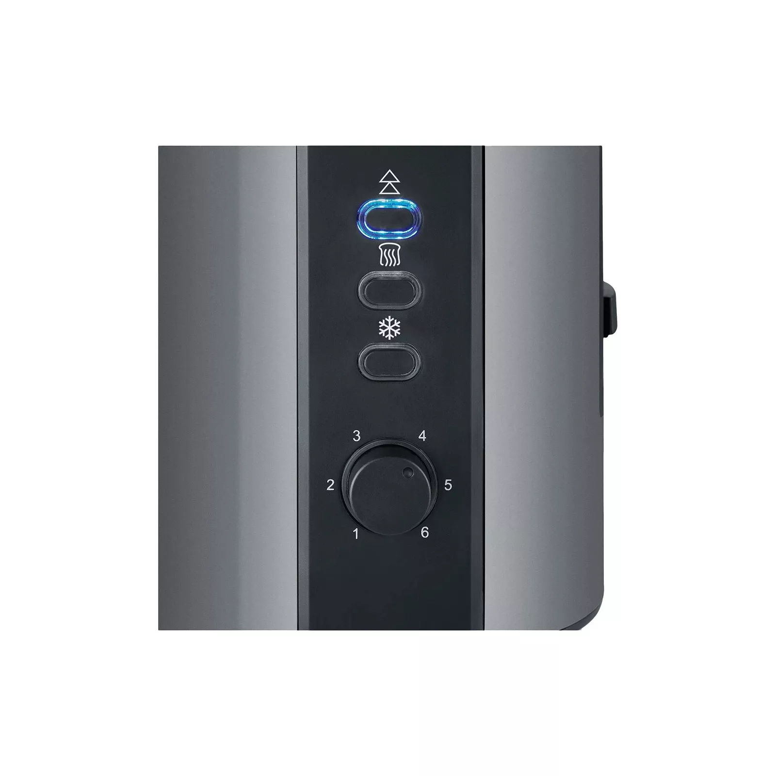 Регулирует уровень поджаривания.                                                       Степень прокаливания регулируется поворотом ручки по часовой и против часовой стрелки. Доступно 6 уровней. Для равномерного подрумянивания с обеих сторон хлеба настроена центровка ломтиков хлеба.