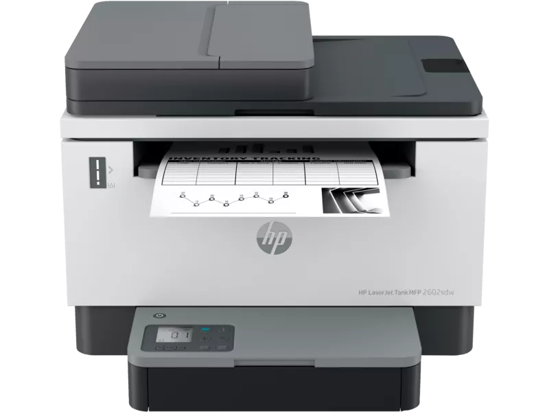 МФУ HP LaserJet Tank 2602sdw, предварительно заправленное оригинальным тонером HP для печати до 5000 страниц, помогает сокращать затраты на печать и расширяет возможности вашего предприятия