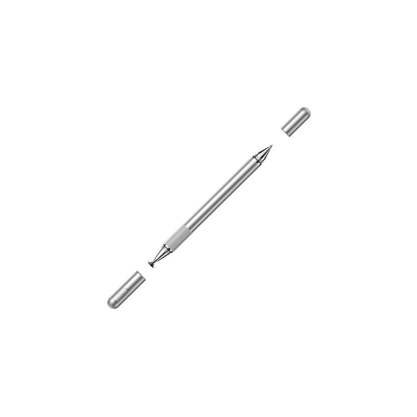 Стилус Baseus Golden Cudgel Capacitive Stylus Pen Silver – идеальный аксессуар и помощник для работы с планшетом или любым вторым электронным устройством. Делать заметки, рисовать, играть – все это можно делать быстрее и удобнее. Стилус поддерживает угол наклона до 180 градусов, удобно лежит в руке и может помочь не только в работе на электронном устройстве: он также является шариковой ручкой. Этот материал придает изделию особую изысканность. Стилус распознает силу нажатия, что дает возможность легко регулировать и изменять толщину линии на рисунке. На колпачке ручки имеется специальный зажим, позволяющий фиксировать ручку на кармане пиджака, сорочки или чехла гаджета. Аксессуар всегда будет под рукой.