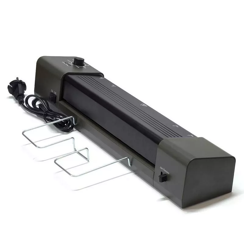 Ламинатор Royal Sovereign ES 902. Пачка пленки в Подарок. Питание : 220~240 В, Мощность(Ватты): 300, Макс. ширина ламинирования (мм): 235, Толщина пленки(мкм): 75~175, Макс. толщина ламинирования (мм): 0.8, Скорость ламинирования (мм/мин): 420, Время готовности (мин): 6~7, Метод нагрева : внешний обогрев валов, Выбор температуры : переключатель, Система подачи листов: 2 вала, Температурный контроль : термостат, Ламинирование фотографий, Реверс есть, Габариты :338 x 141 x 100. Вес кг.: 4.6.