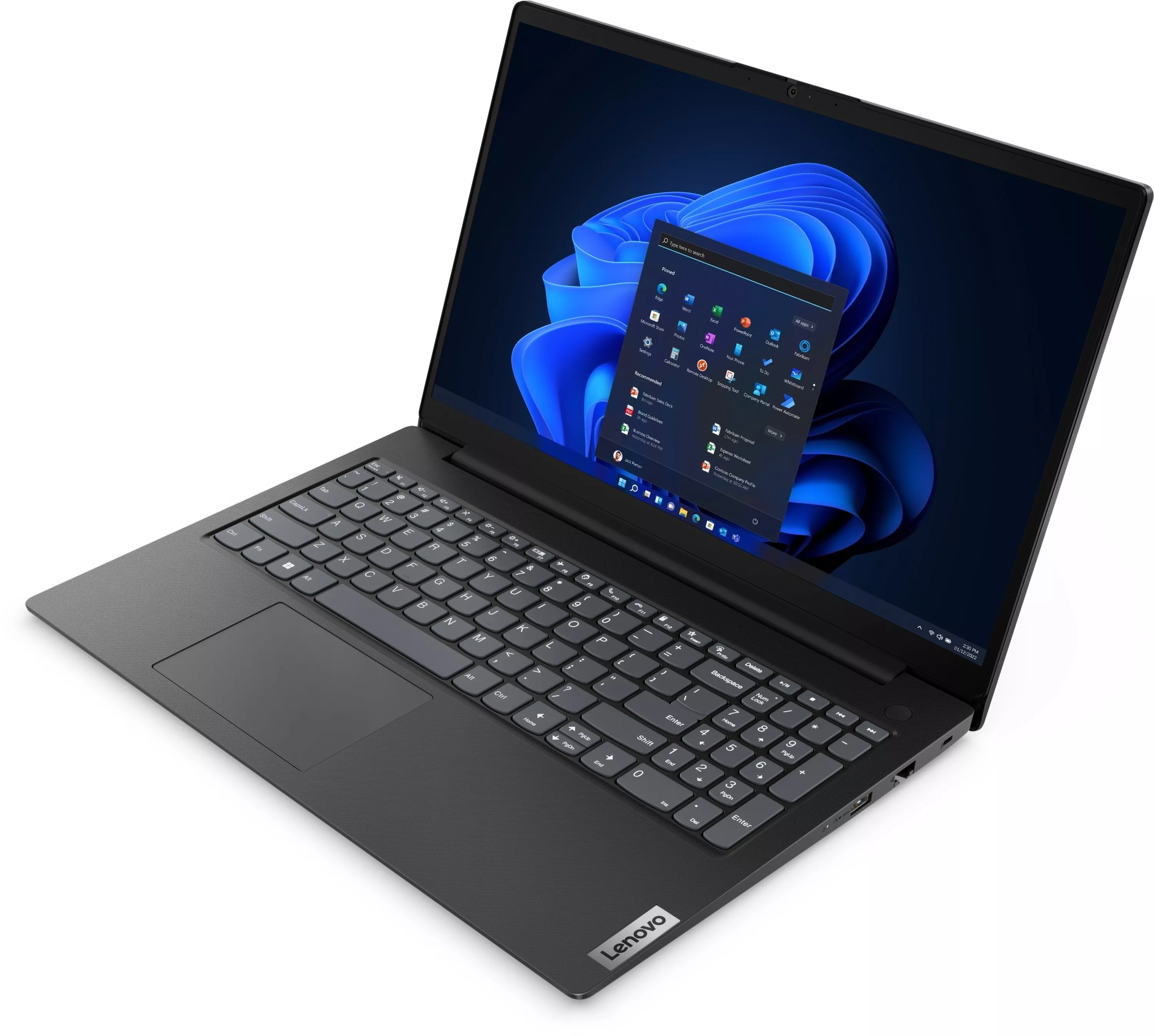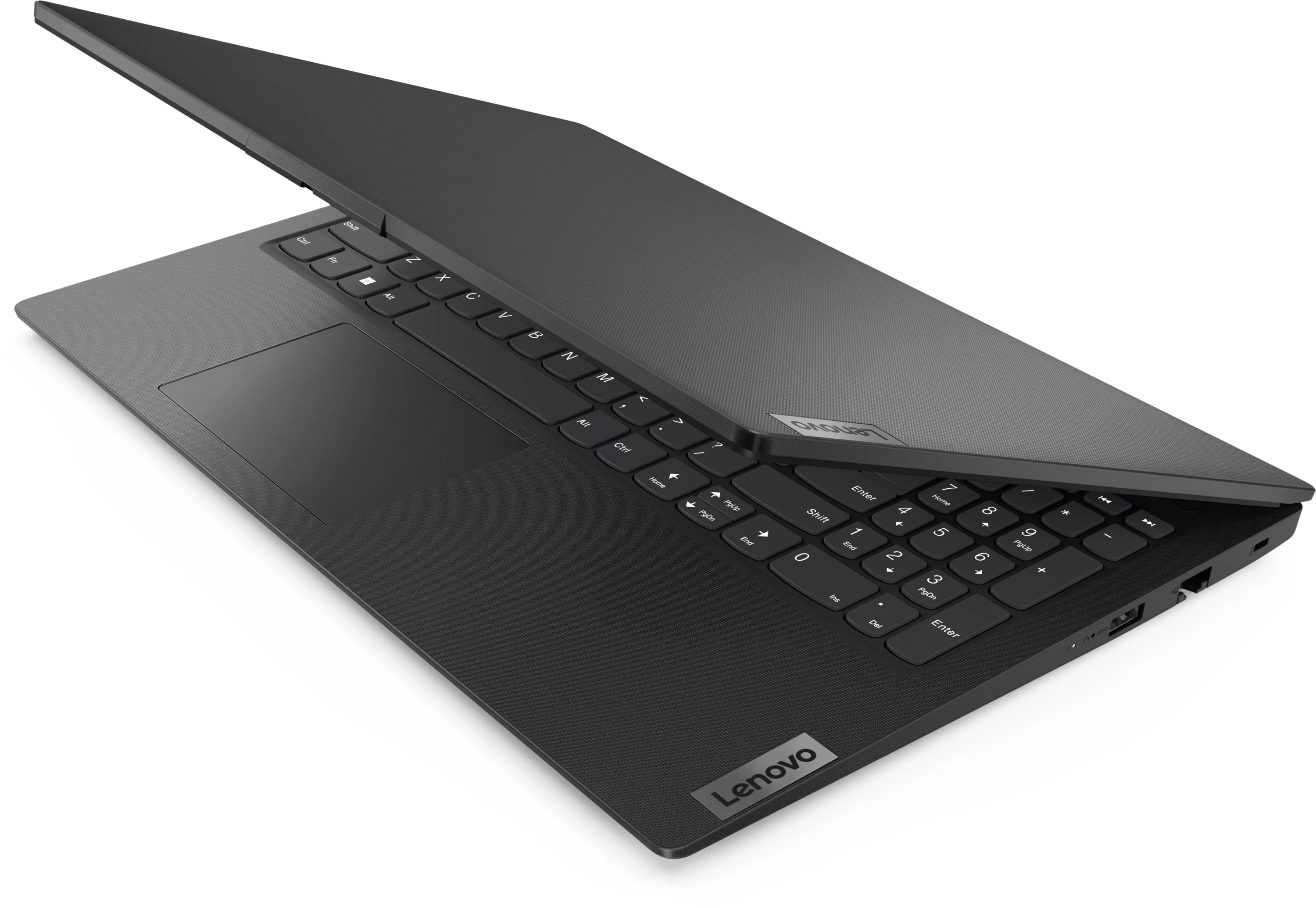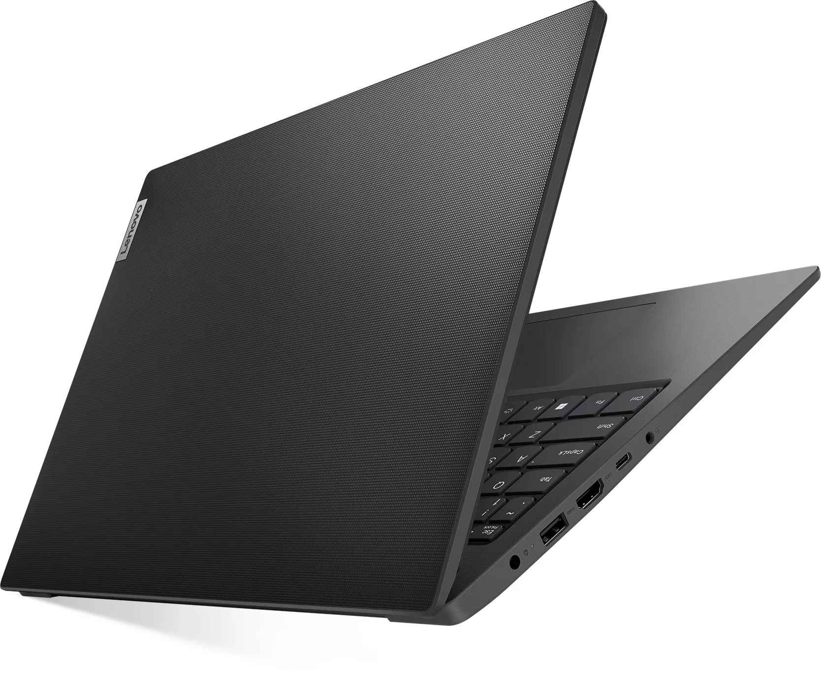 Lenovo V15 имеет тонкий, лёгкий корпус черного цвета весом 1,65 кг, с текстурированным покрытием. Никакой лишней детали и профессиональная сдержанность рабочего помощника, которого удобно взять с собой на деловую встречу или в командировку.