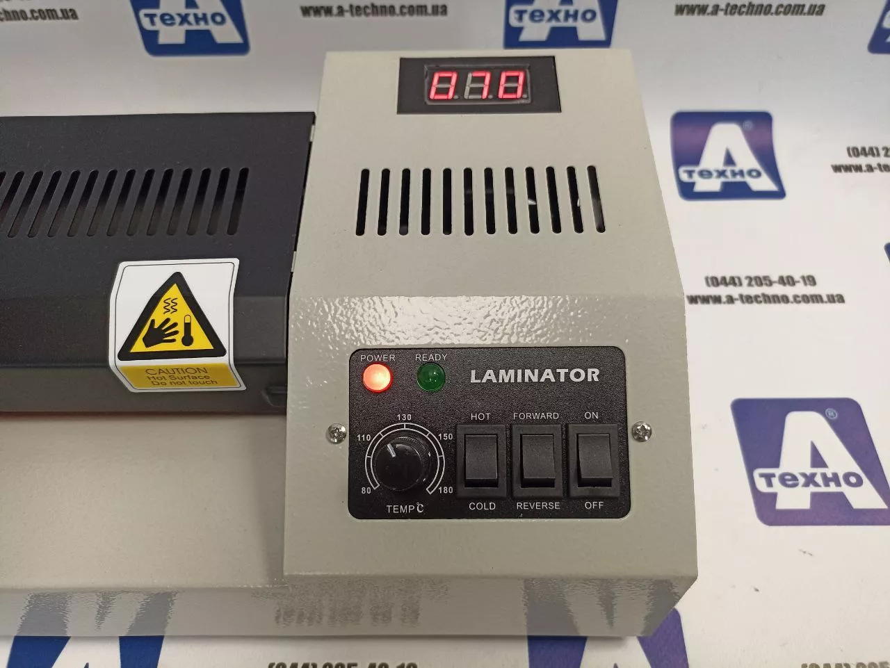 Ламинатор OL-600 А4. Формат А4, ширина ламинации 230 мм. Диапазон ламинируемых пленок от 42 до 250 мкм. Максимальная температура – 180 градусов. Валы большого диаметра, позволяющие идеально ламинировать рельефные материалы. Цифровой регулятор температуры шагом 1 градус. Полностью металлический корпус, четыре вала, свободный доступ к валам. Горячее и холодное ламинирование, реверс. Скорость ламинации – 500 мм/мин. Время нагрева 3 минуты. Может ламинировать любые практичные материалы – картон, бумага, фотобумага, пластиковые карты, визитки и т.д. Есть фольгирование. Вес 5,5кг. Габариты 410х208х110 мм. Мощность 420 Вт.