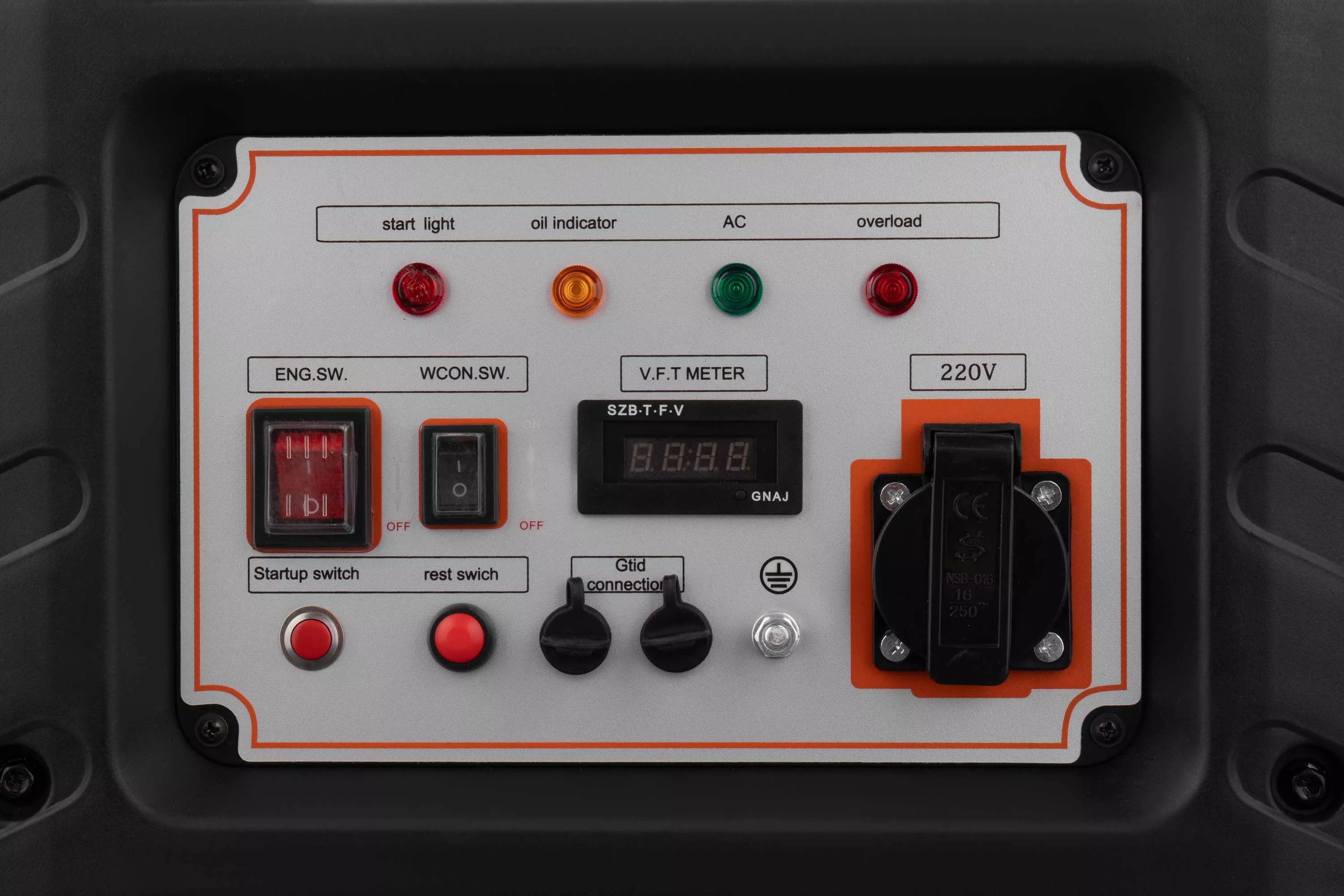 Эта однофазная модель имеет мощность 3,5 кВт, однако максимально может выдавать» 4 кВт. Работает на бензине, объем бака для горючего составляет 10 л. Важной особенностью является возможность заряжать аккумуляторы непосредственно от генератора. Для этого предусмотрена розетка постоянного тока 12 В, 5 А и автоматический переключатель: когда ток превышает указанные показатели, переключатель постоянного тока автоматически выключится. Также имеется розетка переменного тока 220 В. Установка имеет защиту от остановки, перегрузки, индикаторы выходного тока и уровня масла. Для удобства переноски сверху на корпусе встроены две руки.