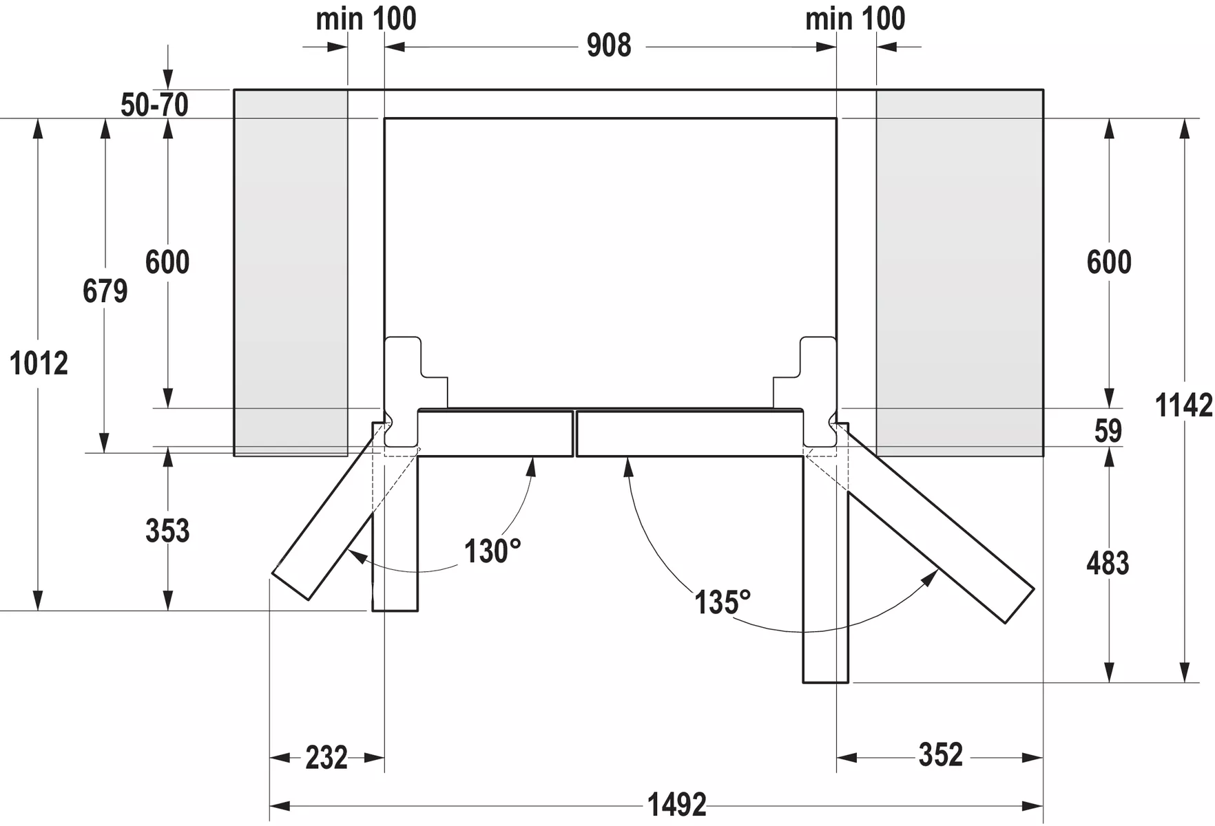 Открытие дверцы | влево/морозильник; вправо/холодильник |