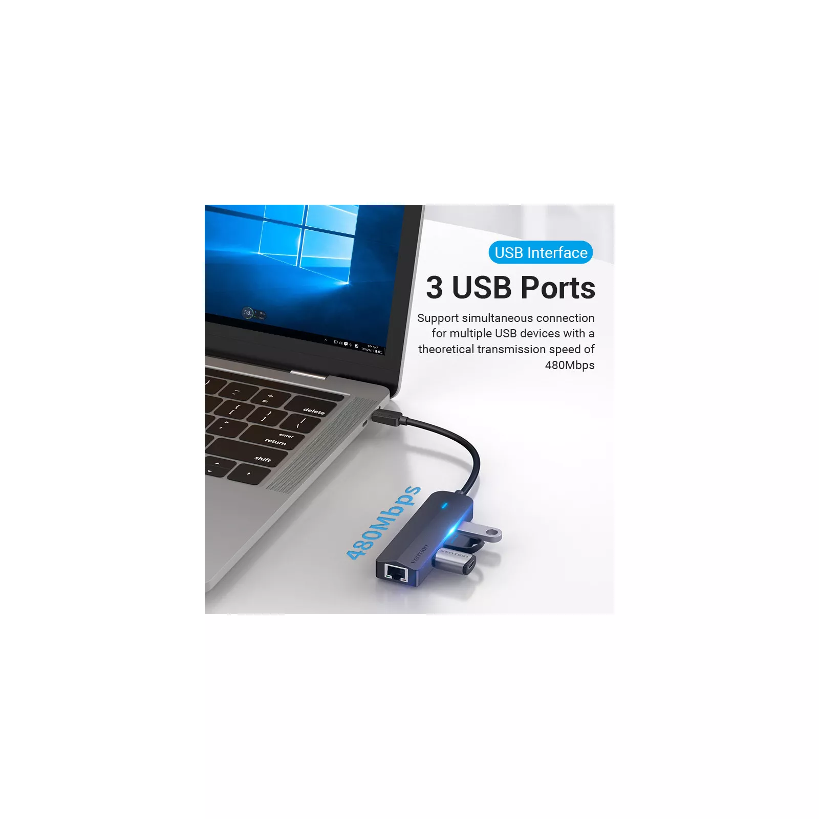 Хаб USB 3.1 Type-C Vention TGOBB поддерживает подключение Plug and Play. Для начала работы вам не придется устанавливать дополнительные драйверы. О состоянии подключения будет сообщать светодиодный индикатор. Хаб совместим с операционными системами Windows 10/8/7/Vista/XP, Linux и Mac OS.