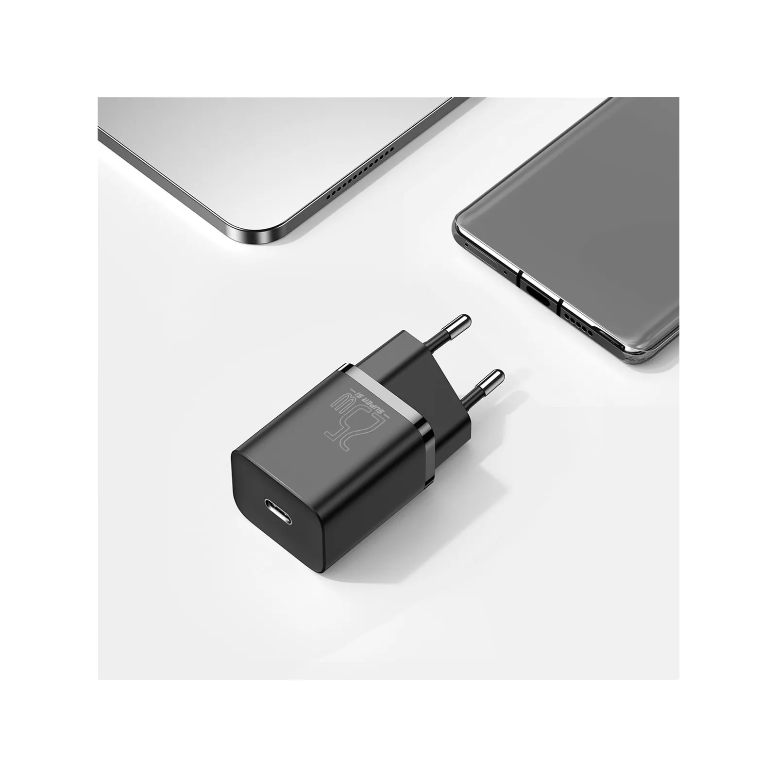 Baseus Super Silicone PD Charger 25W (1Type-C) + With Cable Type-C to Type-C 3A (1m) — сетевое зарядное устройство, оборудованное разъемом Type-C.