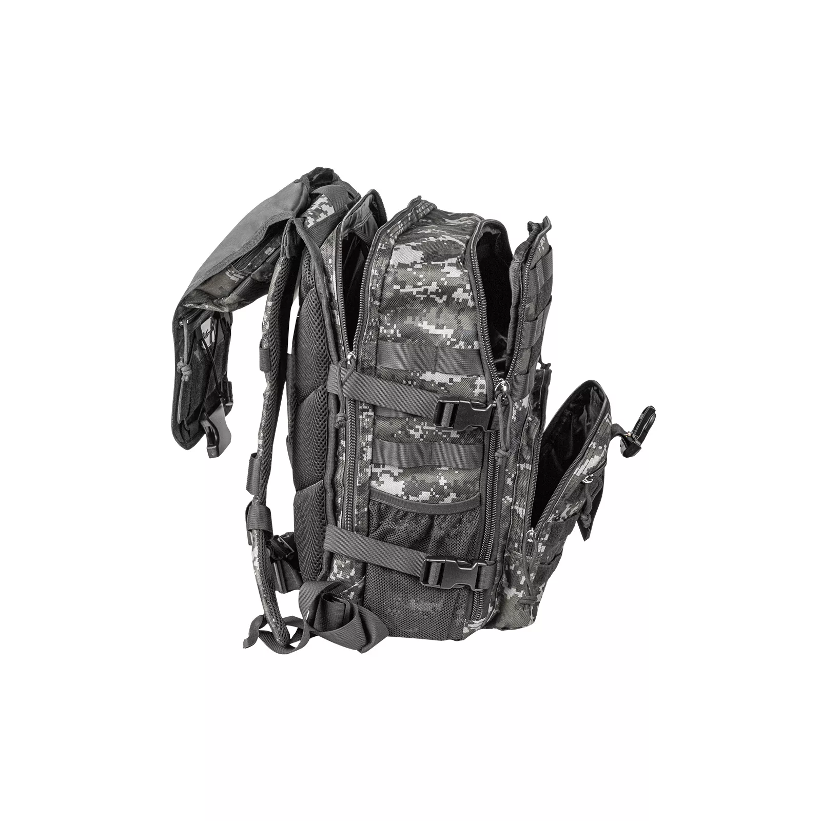 Одно из основных отделений оснащено и укомплектовано специальными карманами для мышки, павербанка и другой периферии. Второе-предназначено для ноутбука 15.6" и имеет отдельное место для планшета. Размещайте еще больше вещей в дополнительных карманах спереди и на клапане, заботьтесь о своем водном балансе – носите с собой воду в двух боковых карманах. Серая пиксельная ткань и набивной жетон создают стильный военный дизайн.
