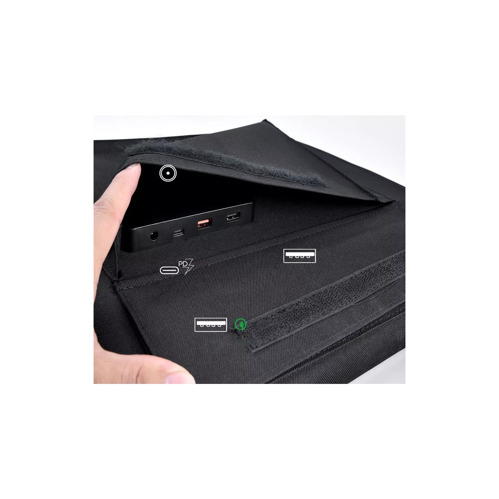 Компактный размер солнечной панели делает ее удобной для хранения в небольших помещениях или перевозки в транспорте. Резиновая ручка поможет легко перенести ее на улицу в случае неожиданного отключения электроэнергии.