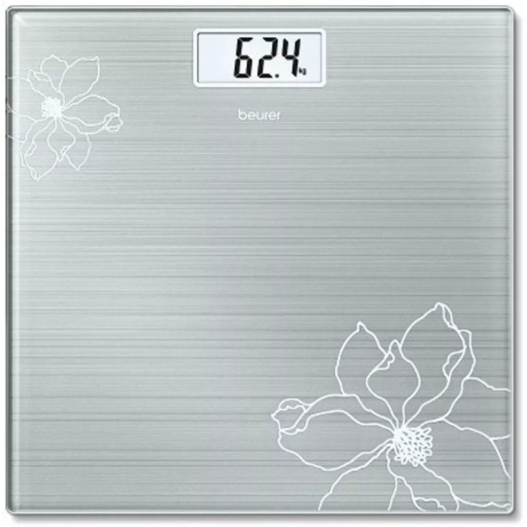 Для надежной и длительной эксплуатации Beurer GS 10 предусмотрено автоматическое включение и выключение. Стеклянная платформа размером 30х30х1,9 см имеет универсальное покрытие из современного ламината. Серый цвет платформы оригинально дополнен красивым белым цветком.