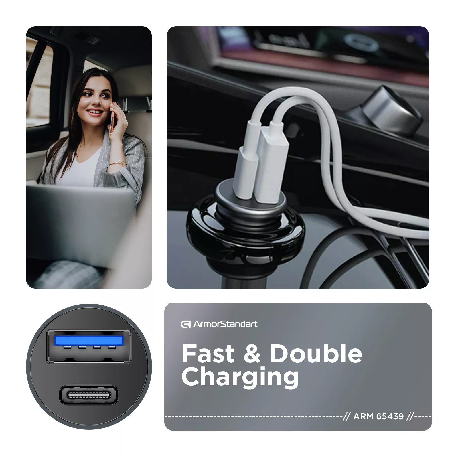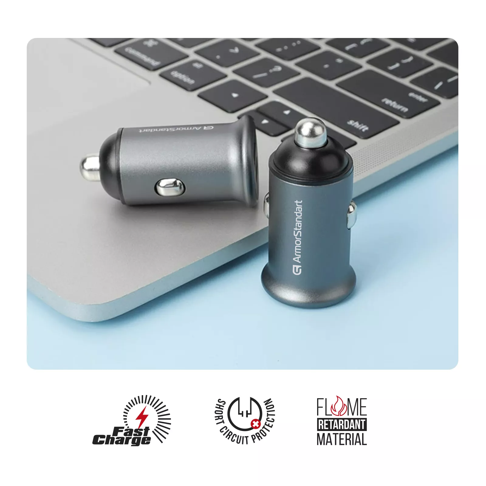 Автомобильное зарядное устройство ArmorStandart USB Type-C PD20W + USB QC 3.0 Grey — это мощный адаптер, идеально подходящий для зарядки гаджетов.