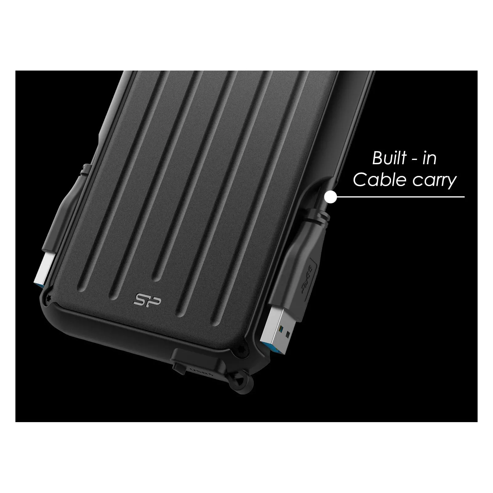 Armor A66 — это настоящий «внедорожник» среди портативных накопителей, который легко справится с ударами, падениями, попаданием под ливень в отпуске и бытовой пылью в офисе. попадание брызг и капель воды со стандартом водонепроницаемости IPX4, что помогает сохранить накопитель целым и защищенным. Накопитель отвечает требованиям армейского стандарта MIL-STD 810G и защищен от случайных ударов и падений с высоты, которые могли Специальная конструкция корпуса с уникальной «подушкой безопасности» также обеспечивает защиту и дает возможность избежать повреждения механизма жесткого диска во время ударов. накопитель защищен от попадания брызг и капель воды стандартом IPX4, а USB-разъем закрывается специальной резиновой заглушкой, поэтому Armor A66 можно смело брать с собой в отпуск или поход, даже если по прогнозу ненастье.