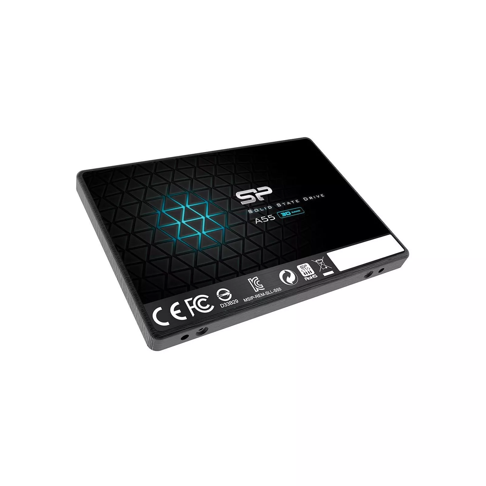 A55 — один из самых легких и тонких накопителей SSD своего класса. В то же время, из-за нехватки подвижных компонентов, он устойчив к ударам и вибрации. А система самодиагностики SMART и технология ECC обеспечивают дополнительную безопасность и надежность при передаче данных. позволяет применять новую архитектуру кэширования, сочетающую в себе SLC и TLC флэш-блоки. Внедрение такой технологии позволяет все данные записать в первой части SLC, а затем последовательно перенести их в TLC, таким образом увеличив максимально и в полном объеме пиковую скорость записи. Кроме того, A55 использует также "кэш-буфер DRAM" для дальнейшего повышения эффективности работы. В общем, такая технология позволяет улучшить выносливость и увеличить срок службы SSD.