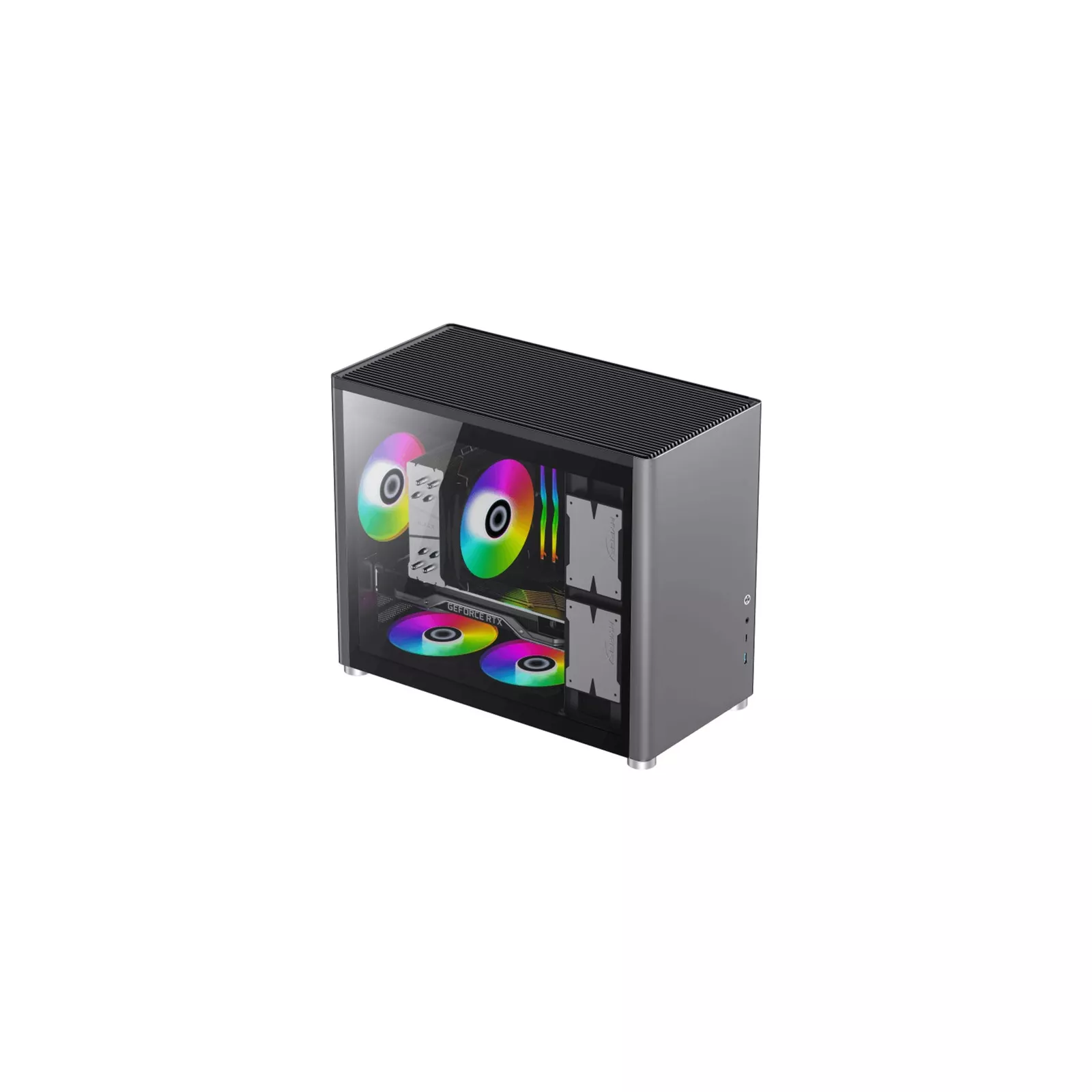 Настольный игровой компьютерный корпус GameMax Spark антрацитового серого цвета, с вертикальным воздушным потоком, идеально подходит для бизнес-компьютерной станции, которая делает сложное из простого и гармонично сочетающегося с домом.