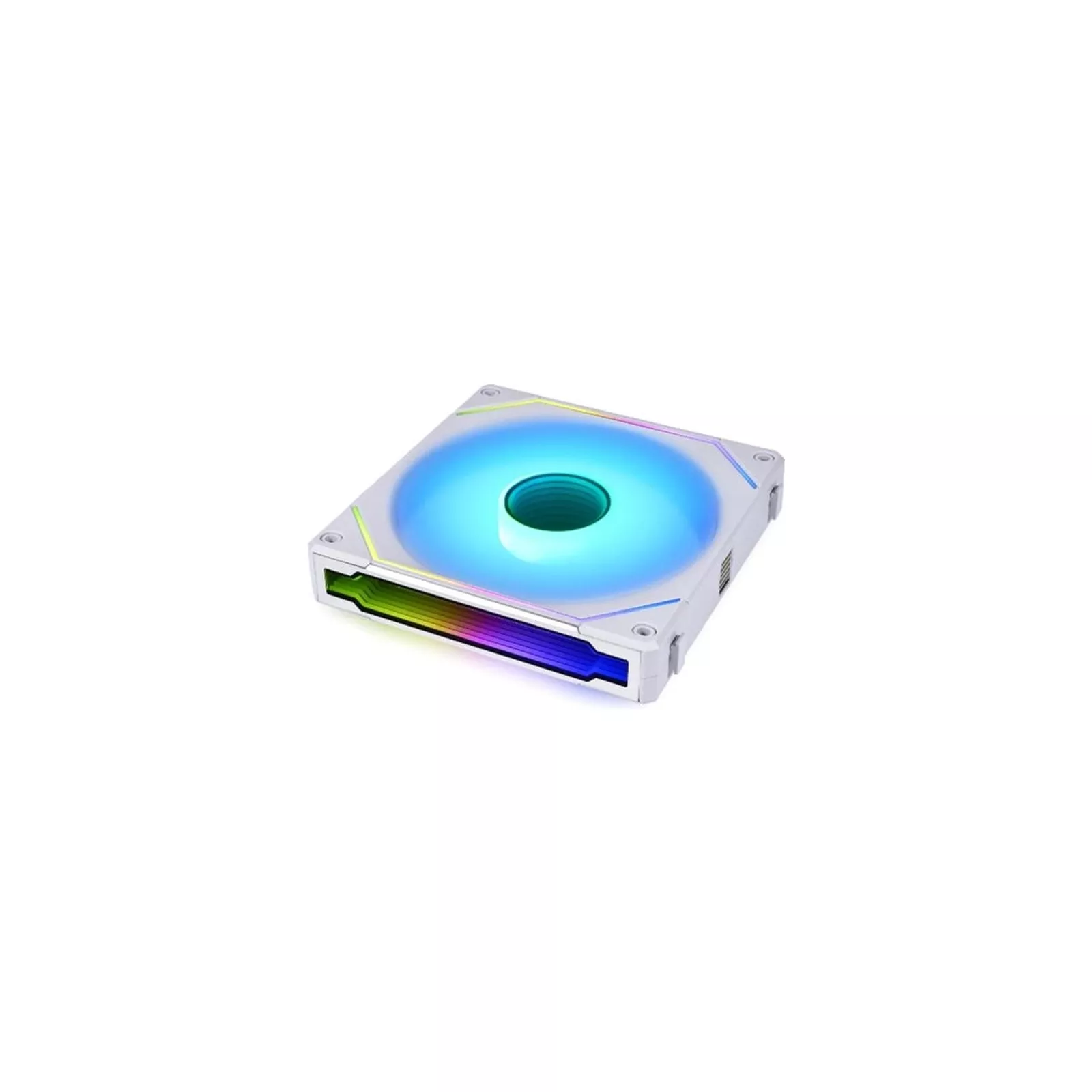 Вентиляторы SL-Infinity, сочетающие в себе оригинальные UNI FAN SL и AL с оттенком бесконечного зеркала, ярко светящиеся с многослойными эффектами под любым видимым углом. иметь несколько слоев, удаленных друг от друга на 0.5 мм. тонкие светодиодные полосы с обеих сторон лопасти вентилятора. Геометрическая форма бесконечного зеркала повторяет переднюю полосу подсветки ARGB в верхней и нижней части, что создает трехмерный вид с углублениями. поклонниками AL, вокруг логотипа LIAN LI на задней панели расположен яркий световой ободок ARGB. который может соединять до 4 вентиляторов в группу, упрощает прокладку кабелей и улучшает совместимость с фитингами радиаторов.
