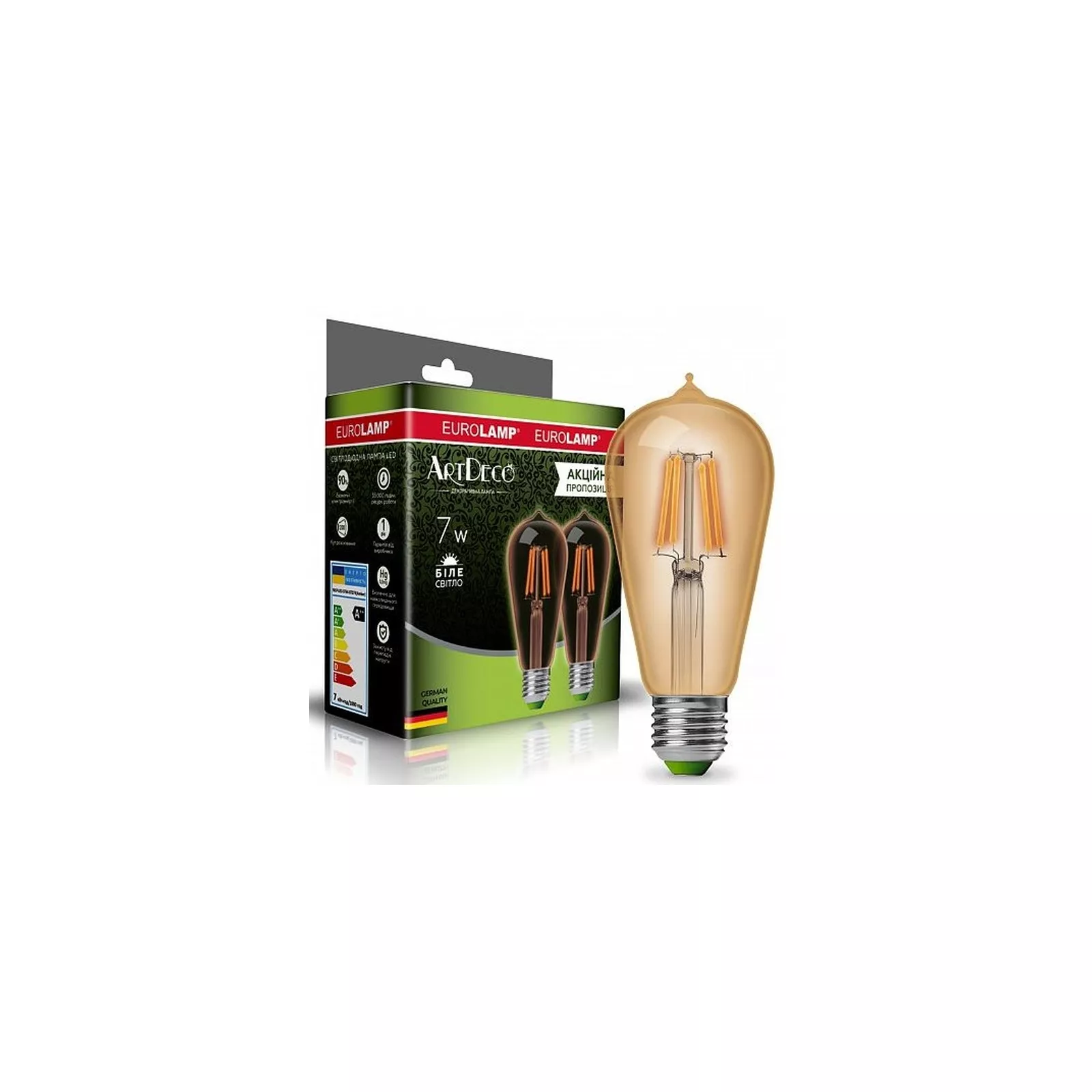 Мультипак "1+1" Eurolamp светодиодная лампа филамент ST64 7W E27 4000K (deco) MLP-LED-ST64-07274(Amber)