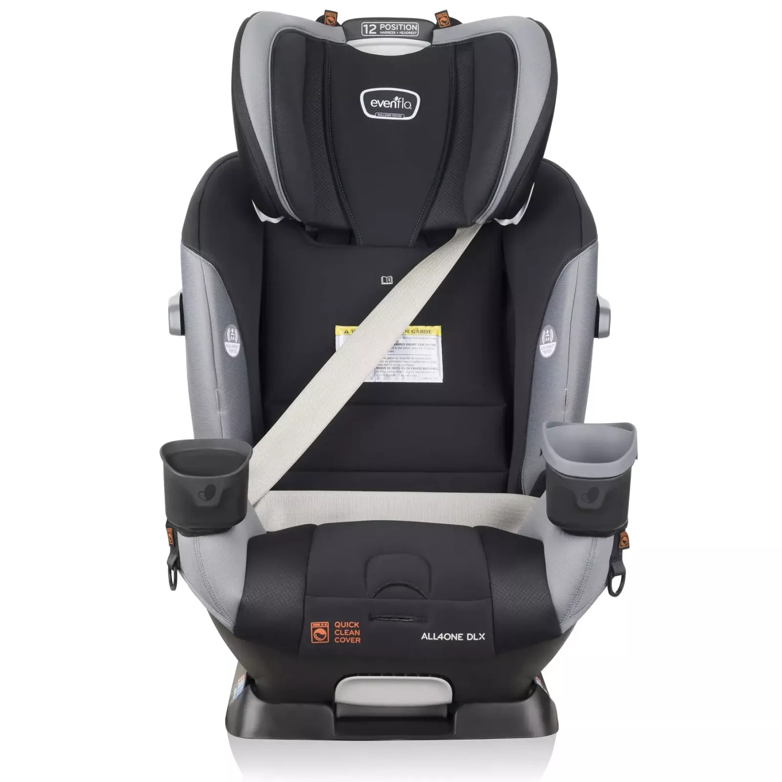 Evenflo All4one DLX – это универсальное автокресло, которое растет вместе с вашим ребенком и предназначено для использования с рождения до 12 лет. За 12 лет использования автокресло может быть адаптировано к каждому этапу развития вашего ребенка и подходит для детей весом от 1.8 до 54.4 кг (с рождения до 145 см ростом). Автокресло оснащено и укомплектовано четырьмя режимами «4-в-1», которые позволяют регулировать его в зависимости от роста и веса вашего ребенка, начиная с положения против направления движения для самых маленьких и заканчивая бустером со спинкой и без спинки для детей весом 55 кг, т.е. 12 лет.