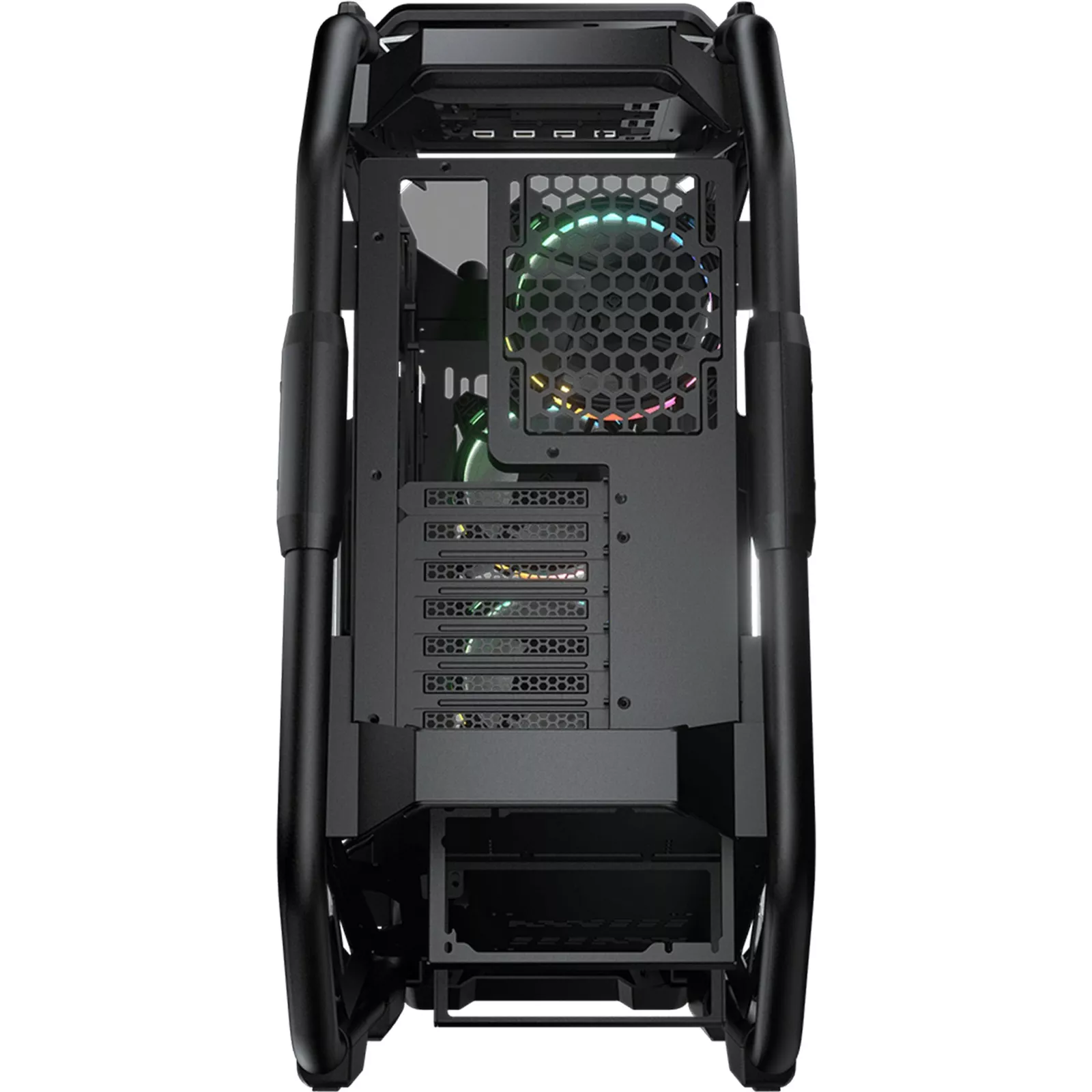 Благодаря простой и быстрой прокладке кабелей в просторном 45-миллиметровом отсеке, вам доступна хорошая и чистая сборка. Полное охлаждение. Полная свобода. Конструкция с открытой рамой поддерживает радиаторы водяного охлаждения до 360 мм, 190 мм процессорный кулер и 9 вентиляторов: возможность оптимизации системы охлаждения с беспрецедентной свободой защищает вашу установку от перегрева даже во время интенсивных сеансов.