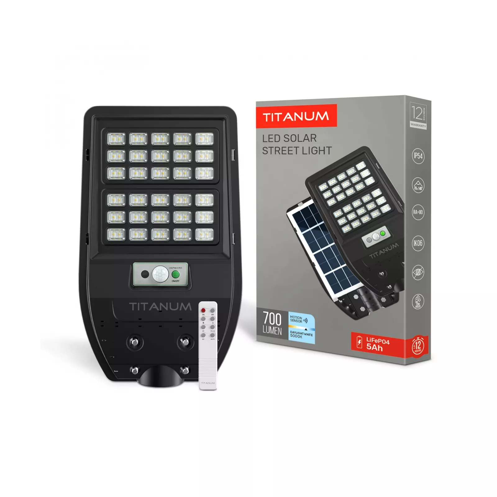 LED светильник солнечный IP54 TITANUM 700Lm 5000K Сенсорный-предназначен для освещения придомовых территорий и дачных участков, въездов и выездов, дорог, парков, скверов, дорожек, площадок, зон отдыха. Конструкция позволяет крепить фонарь на столбы, а также стены с помощью дополнительного кронштейна (в комплект не входит).