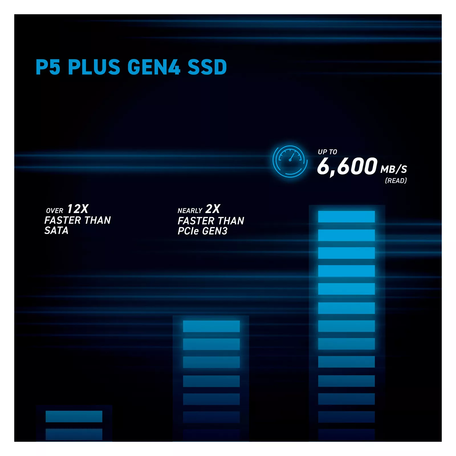 Если производительность и надежность имеют решающее значение, создайте свой суперкомпьютер с помощью нашей технологии Micron Advanced NAND и PCIe 4.0 NVMe. Этот накопитель Crucial P5 Plus почти вдвое быстрее, чем продукты предыдущего поколения и может похвастаться скоростью чтения до 6600 МБ/с. Накопитель P5 Plus разработан, изготовлен и испытан совместно с Micron на всех этапах для обеспечения качества, которому вы можете доверять.