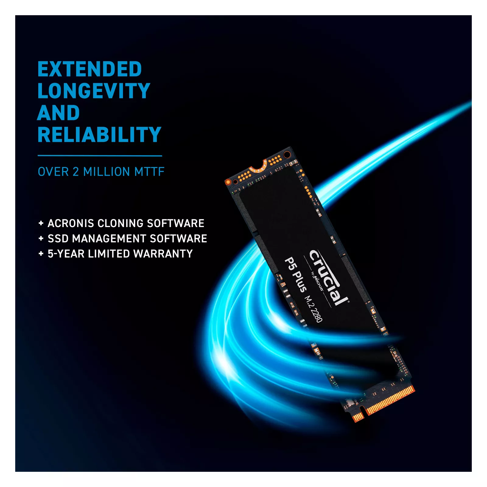 Совместите производительность и надежность с расширенными функциями нашего P5 Plus, включая ведущее решение NAND, инновационную технологию управления памятью, адаптивную защиту от перегрева, динамическое ускорение записи, исправление ошибок и возможность шифрования. Все SSD-накопители Crucial также поставляются с нашим программным обеспечением Storage Executive и бесплатным ПО для клонирования.