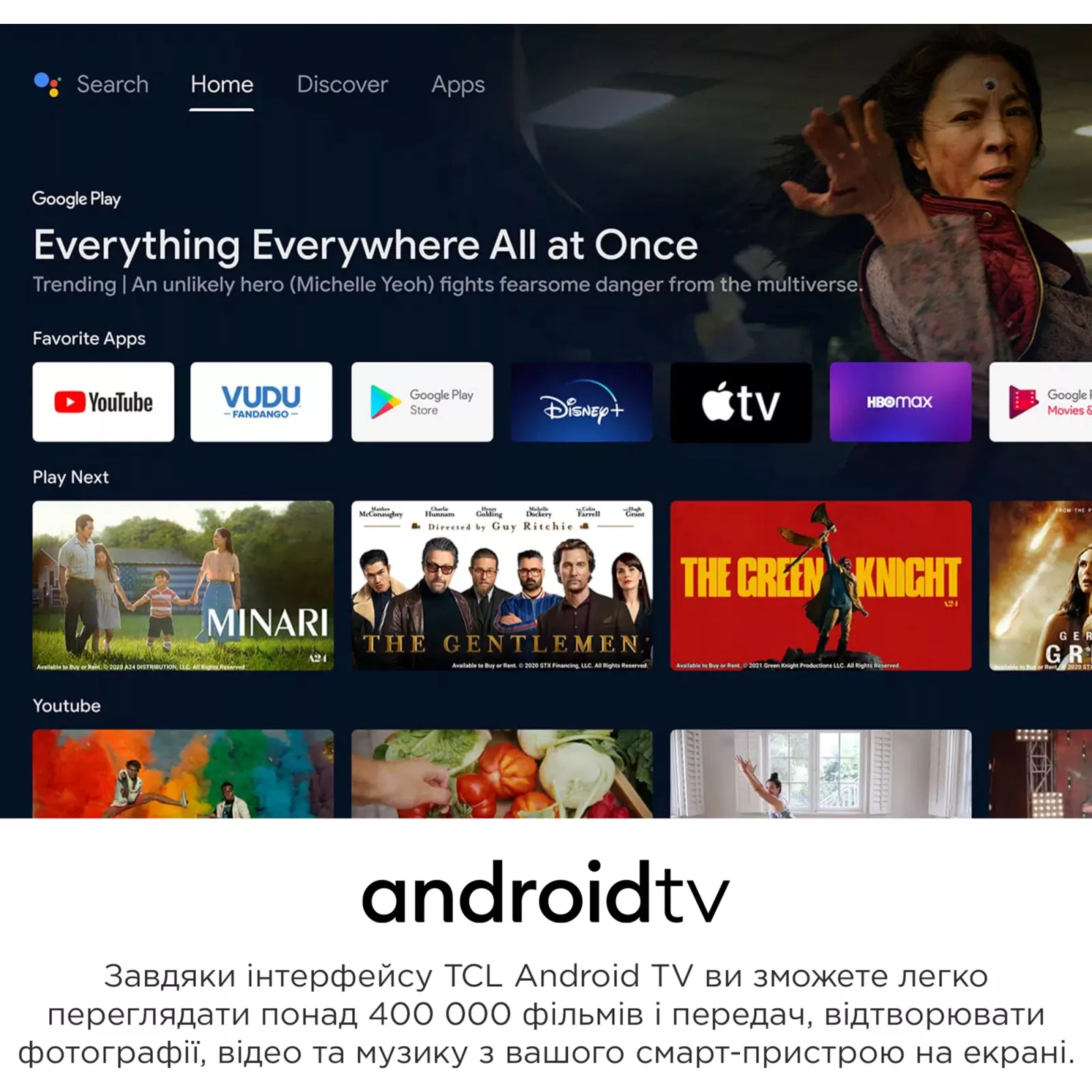 Благодаря понятному интерфейсу TCL Android TV вы сможете легко просматривать более 400 000 фильмов и передач, а также воспроизводить фотографии, видео и музыку из вашего смарт-устройства на экране.