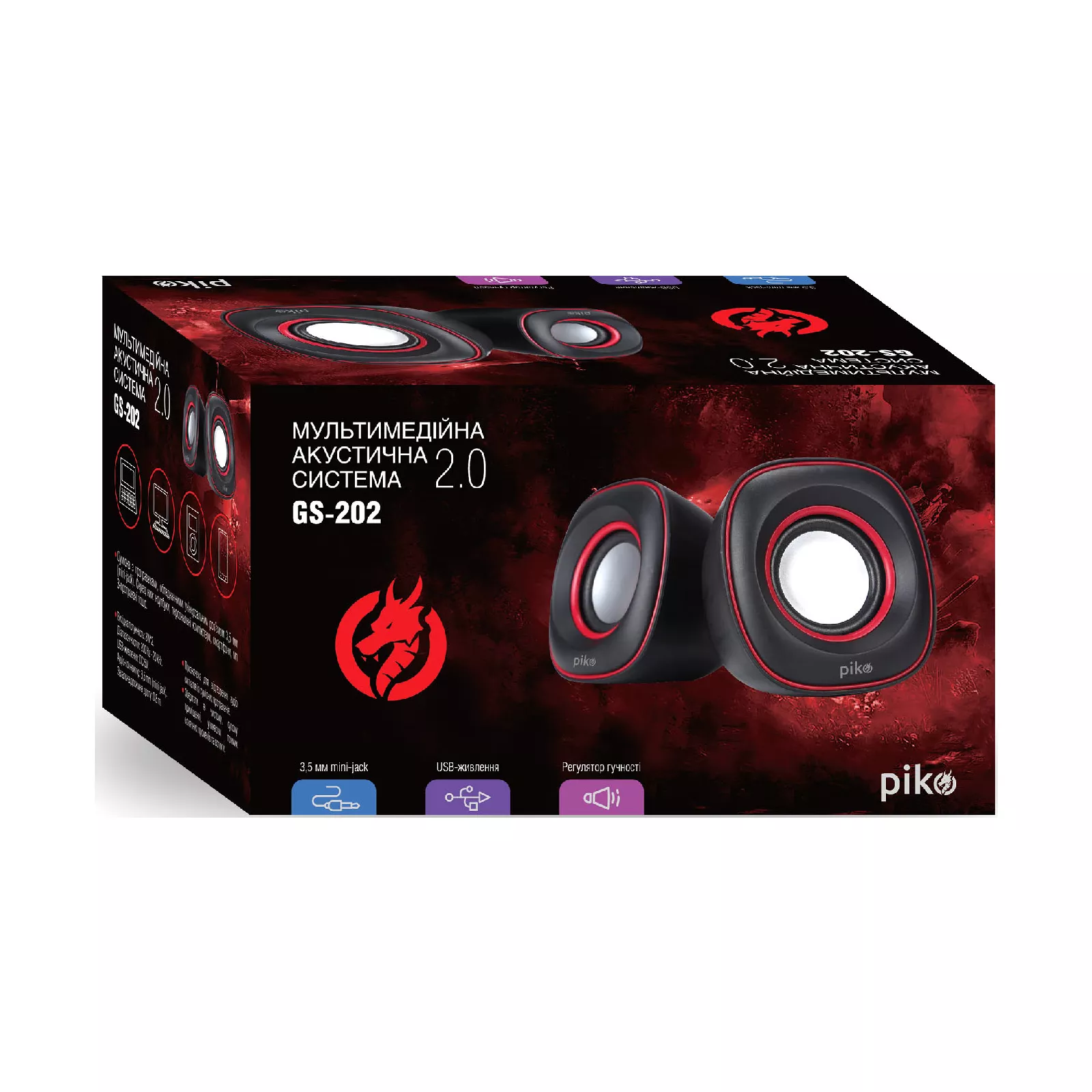 Компактные стереодинамики Piko GS-202, которые питаются через USB-порт компьютера или ноутбука или любого совместимого источника питания (5 В). Является отличным решением для тех, кто экономит свободное место на рабочем столе. Благодаря стандартному аудиоштекеру 3.5 мм (mini-jack) колонки совместимы с большим количеством устройств (компьютеры, ноутбуки, плееры, смартфоны, планшеты и т.п.). Встроенный в корпус регулятор позволяет удобно и точно выбирать нужную громкость.