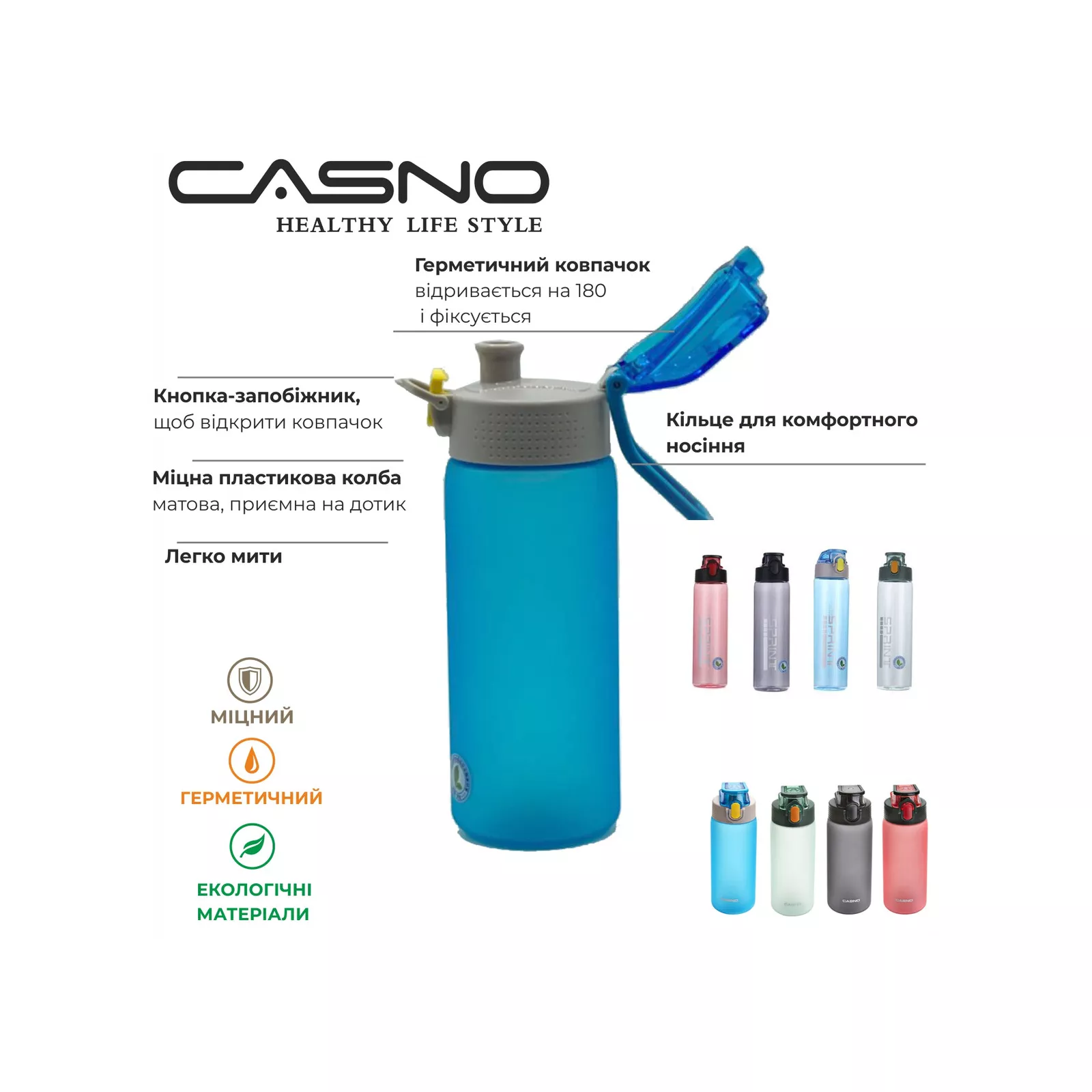 Бутылки бренда Casno помогут вам следить за вашим водным балансом. А это, и себе, будет способствовать достижению любых целей в фитнесе, включая снижение веса, контроль аппетита и общего состояния здоровья.