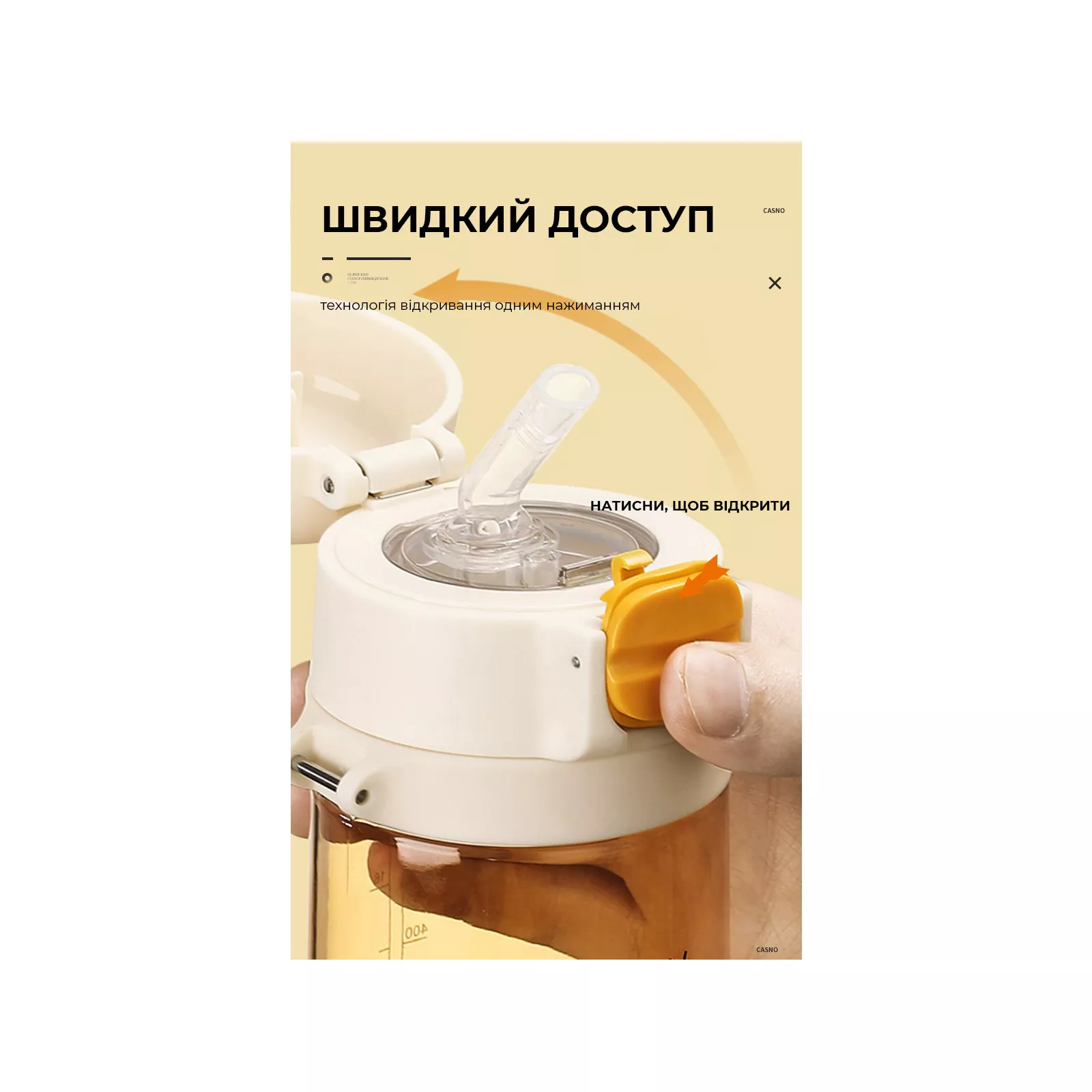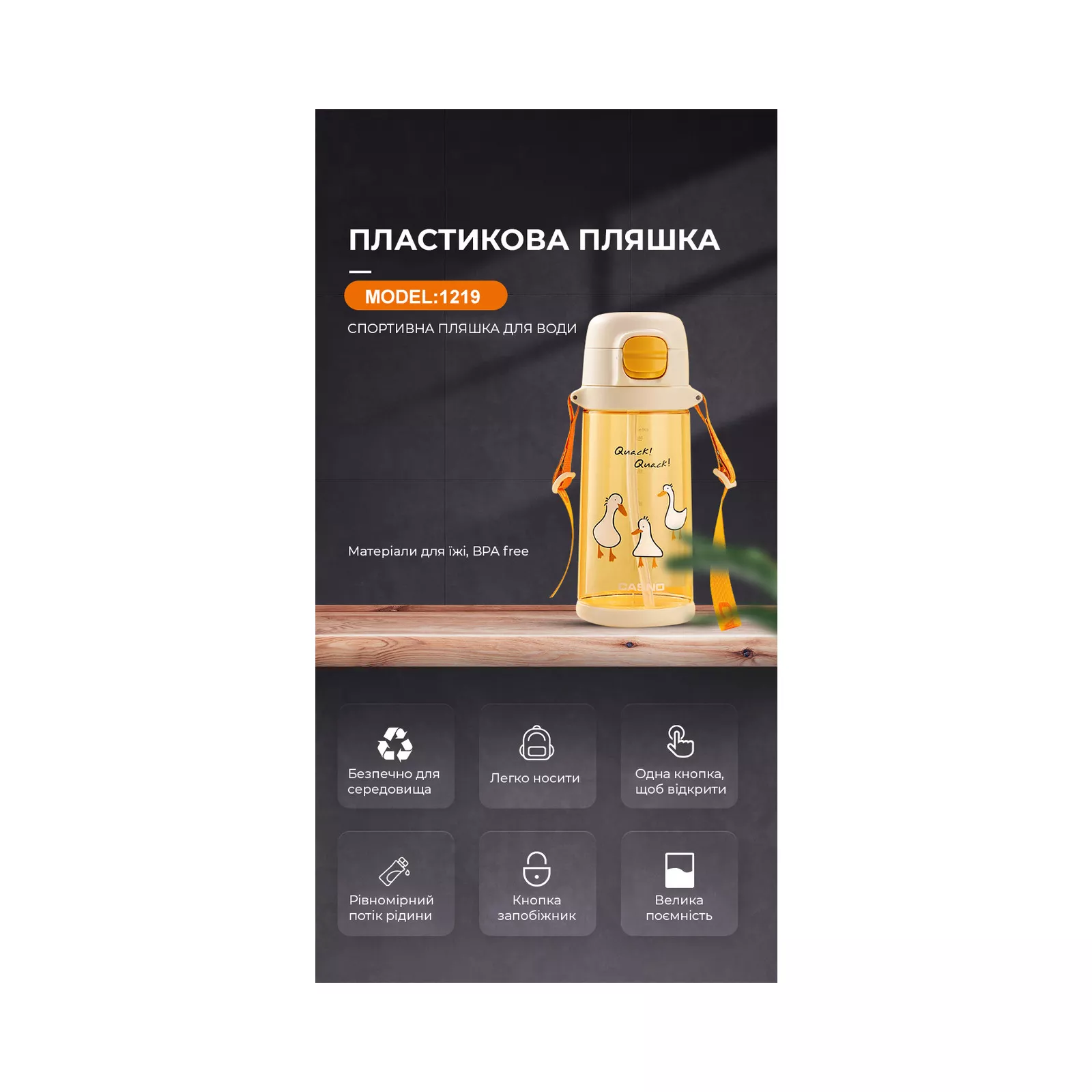 — бутылка для воды, изготовленная из качественного пластика Tritan, она не имеет постороннего запаха, удобна в использовании, безвредна для здоровья. Она идеально подходит для пеших прогулок, езды на велосипеде, кемпинга, трекинга, бега, йоги и любых других видов спорта дома, в тренажерном зале и в офисе.